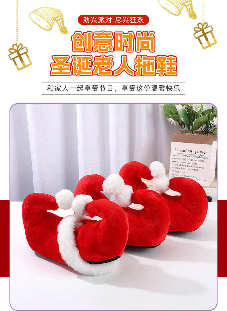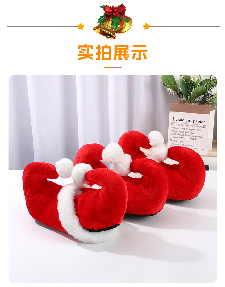 Navidad lindo algodón zapatillas rojo dibujos animados Santa duende zapatos Navidad decoración zapatillas en stock al por mayor