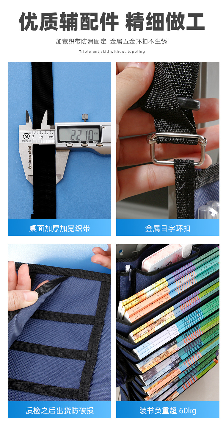 Estudiante de secundaria de color sólido de 5 capas de 8 capas de 11 capas de escritorio artefacto colgante bolsa de libro con cuerda antideslizante bolsa de libro de almacenamiento multifuncional