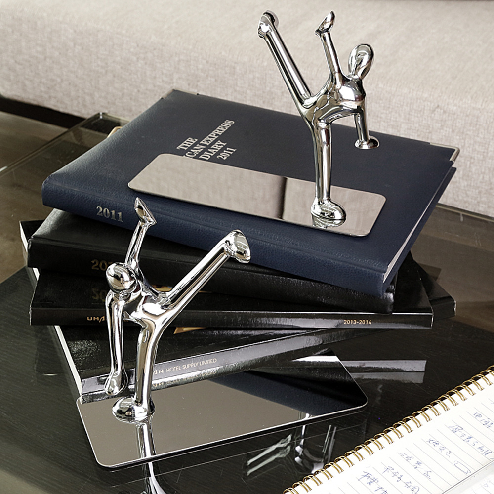 Libro de Metal soporte de libro titular de libro en forma humana titular de libro de acero inoxidable de escritorio de mano empuje adornos de decoración creativa