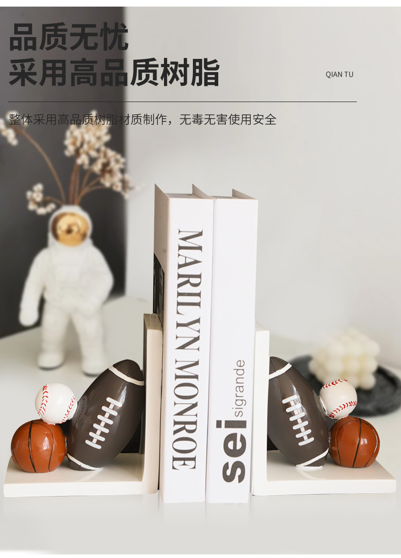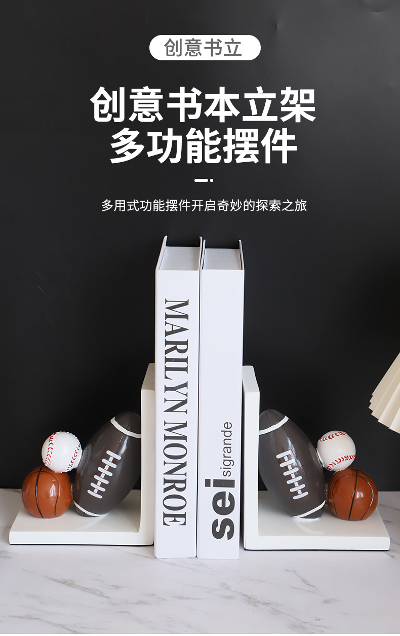 Creativo de resina de baloncesto libro de pie de libro de rugby libro de pie de libro de béisbol soporte de libro estantería decoración del hogar adornos