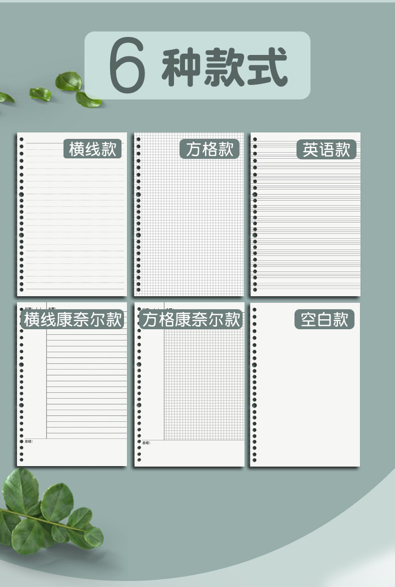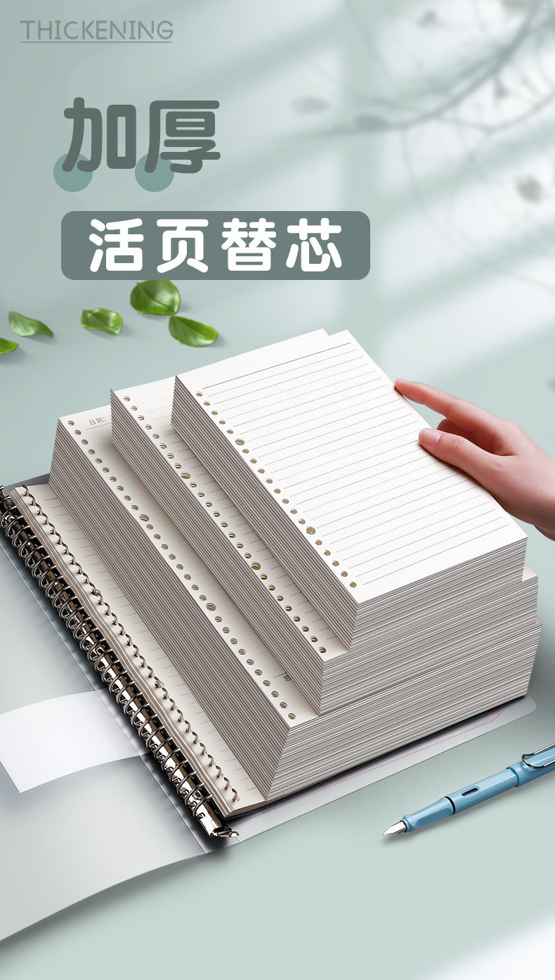 Sijin de hojas sueltas de reemplazo al por mayor de hojas sueltas de papel de 30 agujeros extraíble engrosado de doble cara horizontal cuaderno de hojas sueltas núcleo interno