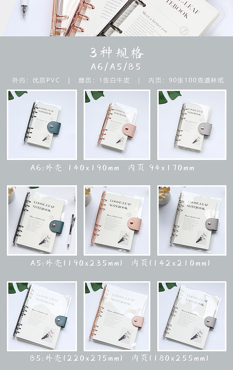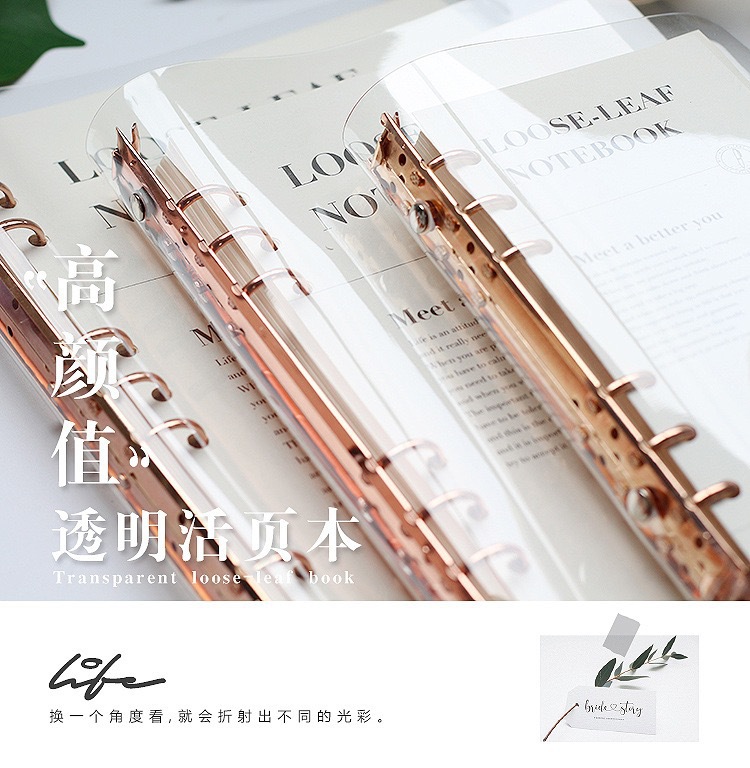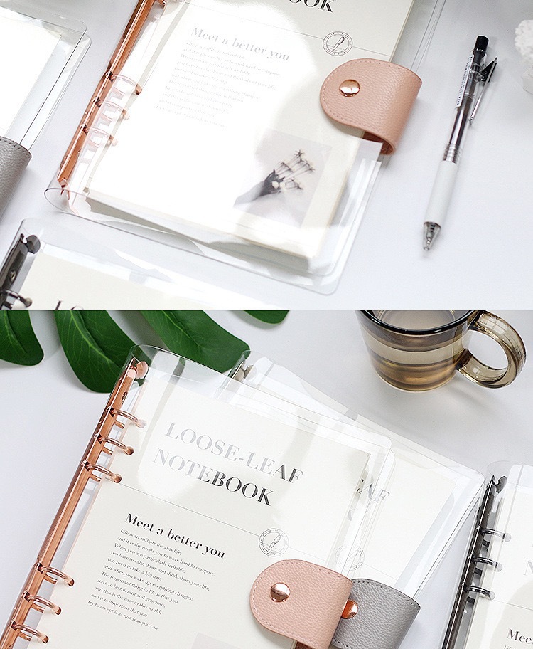 Simple transparente de alta apariencia estudiante de pvc transparente shell 6 agujeros de hojas sueltas portátil extraíble b5 cuaderno a5 diario