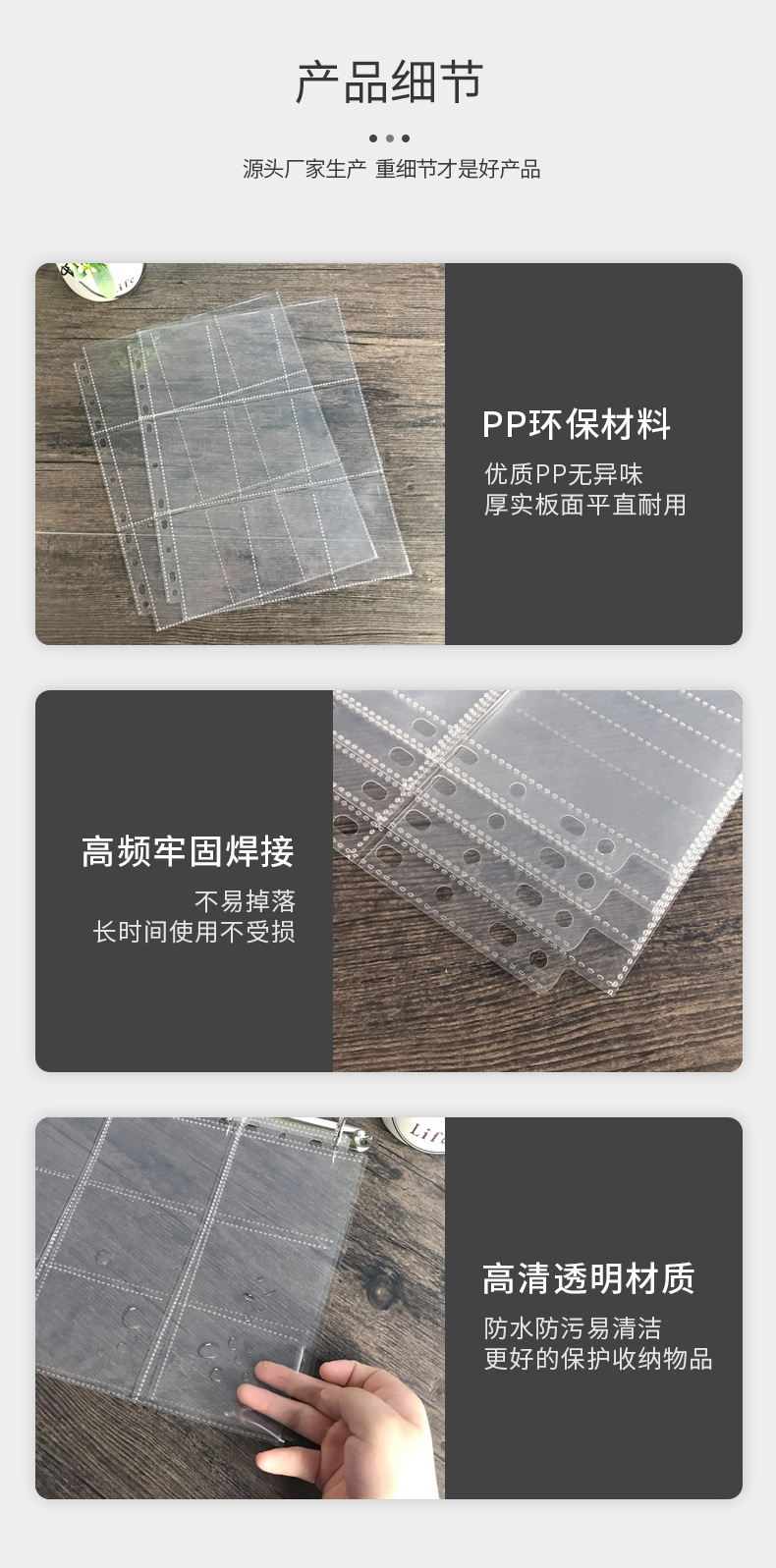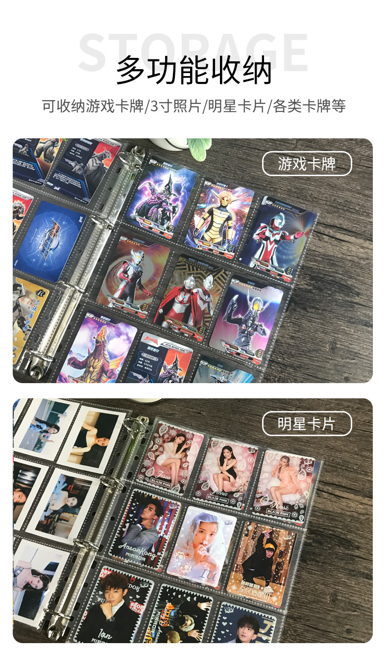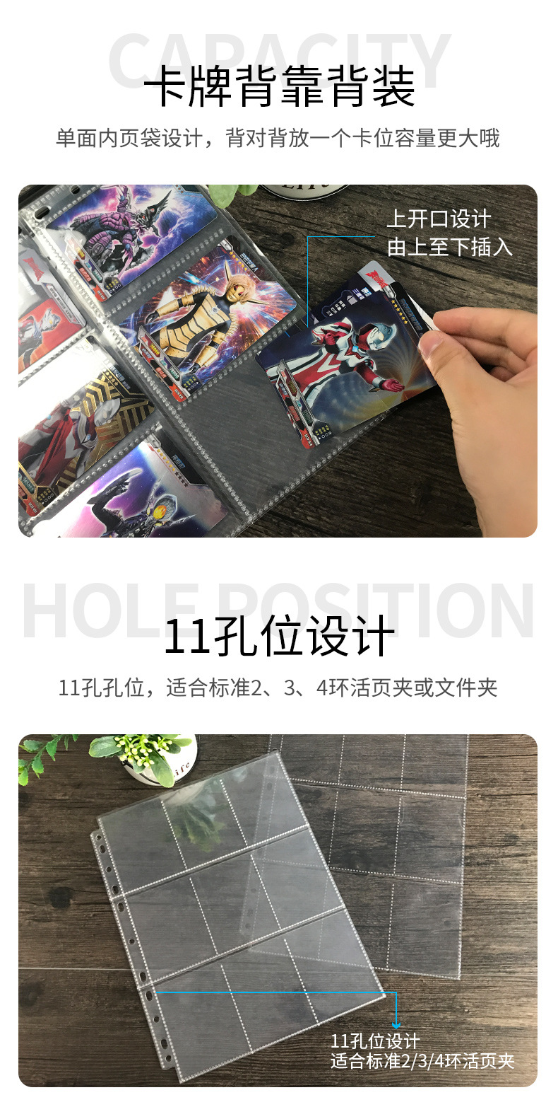 Jiugongge PP hoja suelta transparente libro de tarjetas página interior Tarjeta de juego Tarjeta de estrella libro de colección de cuatro rejillas Página de tarjeta A4 de 11 agujeros