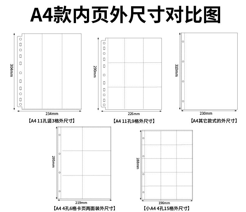 | Colores | Página de tarjetas A4 pequeña de 11 agujeros y 9 cuadrículas, una cara, 10 hojas, 31#,Páginas de tarjetas A4 grandes de 11 agujeros y 9 cuadrículas 10 hojas 47#,Fundas para tarjetas A4 de 4 anillas y 9 bolsillos, 10 hojas, 37.#,A4 11 agujeros 9 cuadrículas tarjeta página 10 cuadrículas individuales 7,2*9,9 cm 104#,Hoja de tarjeta A4 de 4 agujeros y 1 cuadrícula, 10 hojas, 33.#,Páginas para tarjetas A4 de 4 anillas y 2 bolsillos, 10 hojas, 34.#,Páginas para tarjetas A4 de 4 agujeros y 4 cuadrículas, 10 hojas, 35.#,Hoja de tarjeta A4 de 4 agujeros y 6 cuadrículas, 10 hojas por un lado, 36#,Hoja de tarjeta A4 de 4 agujeros y 6 cuadrículas, 10 hojas por ambos lados, 30#,Hoja de tarjetas A4 de 4 agujeros y 15 cuadrículas, 10 hojas por ambos lados 29#,Hoja de tarjeta A4 de 11 agujeros y 1 cuadrícula, 10 hojas, 38.#,Hoja de tarjeta A4 horizontal de 11 agujeros y 2 cuadrículas, 10 hojas por un lado 39#,Páginas de tarjetas A4 de 11 agujeros, verticales, de 2 rejillas, 10 hojas, 40.#,Páginas de tarjetas A4 horizontales de 11 agujeros y 3 cuadrículas, 10 hojas, 41.#,Páginas de tarjetas A4 de 11 agujeros, verticales, con 3 cuadrículas, 10 hojas, 56.#,Páginas de tarjetas A4 horizontales de 11 agujeros y 4 cuadrículas, 10 hojas, 43.#,Hoja de tarjeta A4 de 11 agujeros y 4 cuadrículas, 10 hojas por un lado 42#,Páginas de tarjetas A4 de 11 agujeros y 6 cuadrículas, 10 hojas, 44#,Páginas de tarjetas verticales de 6 cuadrículas, tamaño A4 pequeño, 11 agujeros, 10 hojas, 66.#,Páginas de tarjetas verticales A4 grandes de 11 agujeros y 6 cuadrículas 10 hojas 45#,Páginas para tarjetas A4 de 11 agujeros y 8 cuadrículas, 10 hojas, 46#,Páginas de tarjetas A4 de 11 agujeros, verticales, con 8 cuadrículas, 10 hojas, 64.#,Páginas para tarjetas A4 de 11 agujeros y 10 cuadrículas, 10 hojas, 48#,Páginas de tarjetas A4 de 11 agujeros y 12 cuadrículas, 10 hojas, 80 #,Páginas de tarjetas A4 de 11 agujeros y 16 cuadrículas, 10 hojas, 81.#,Páginas para tarjetas A4 de 11 agujeros con forma especial y 3 rejillas, 10 hojas, 83.#,Páginas de tarjetas A4 de 11 agujeros con forma especial de 8 cuadrículas 10 hojas 82#,Correa a4 de gran apertura abrazadera tipo 0 de 4 orificios,Correa a4 clip vertical de 4 orificios (la carcasa no tiene página interior),Clip para carpeta A4 con carpeta con junta tórica de 4 orificios (solo cubierta, sin inserciones) |