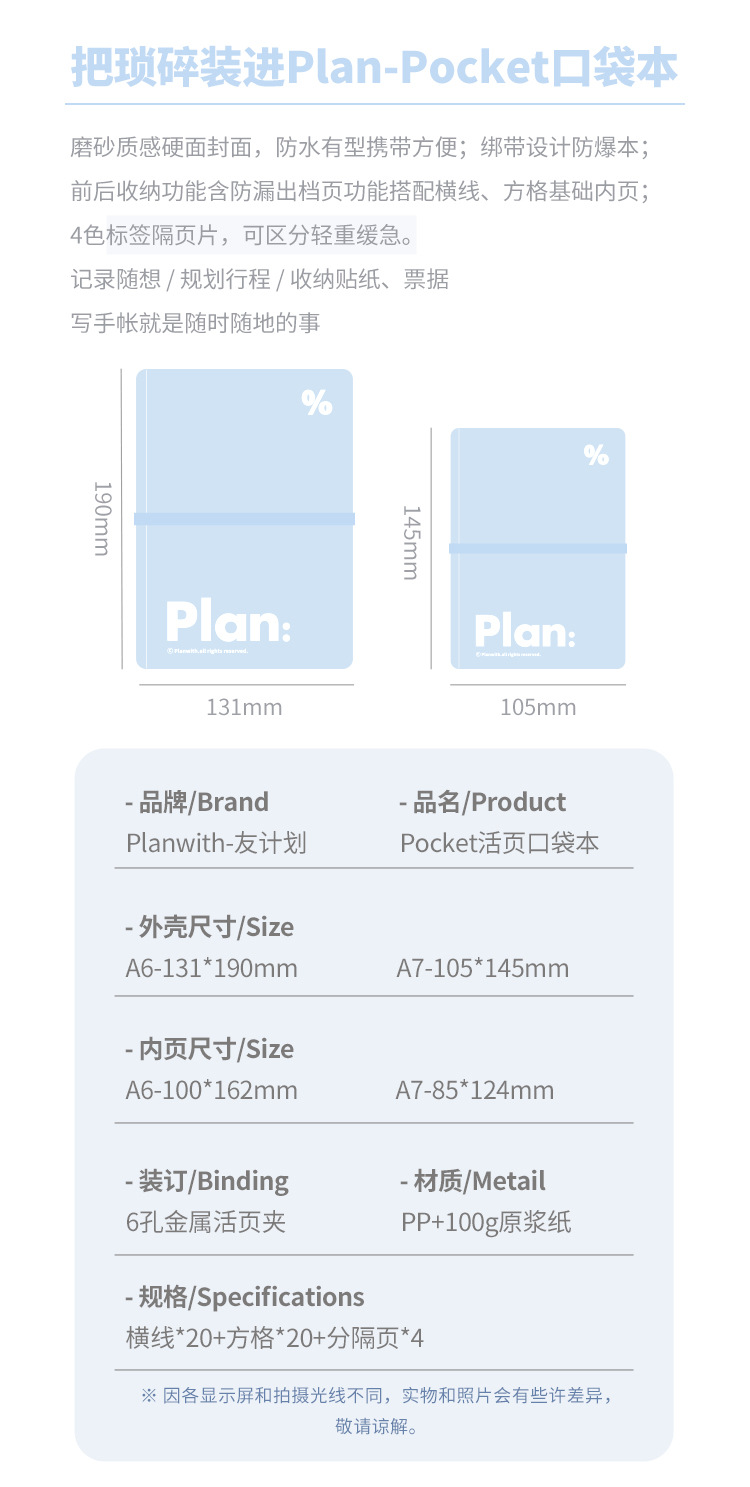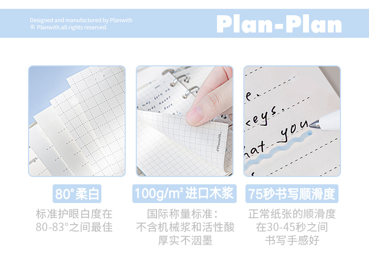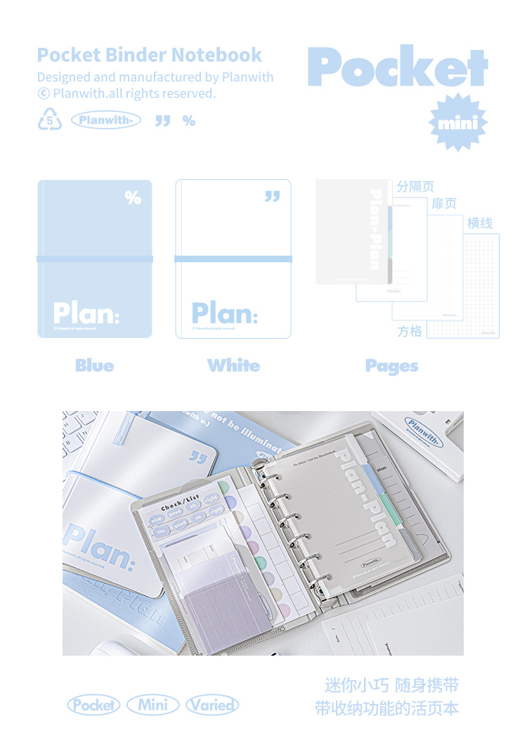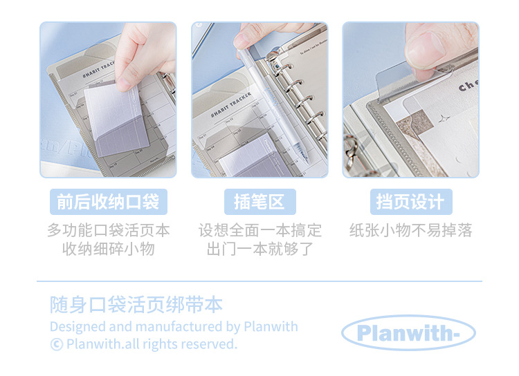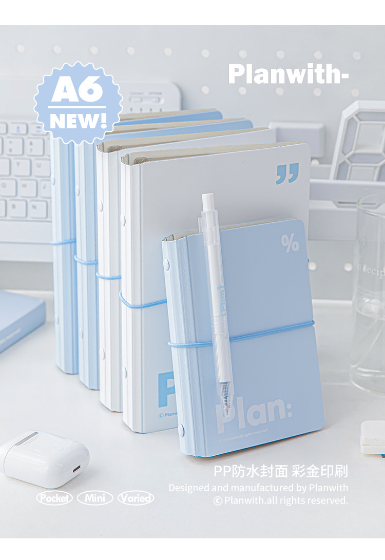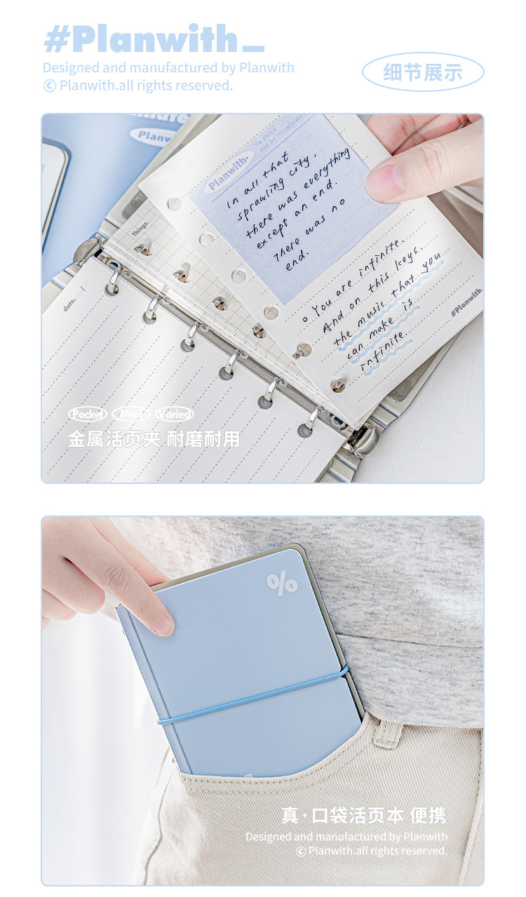 Planwith simple bolsillo de hojas sueltas portátil de la correa portátil de almacenamiento extraíble estudiante portátil Bloc de notas