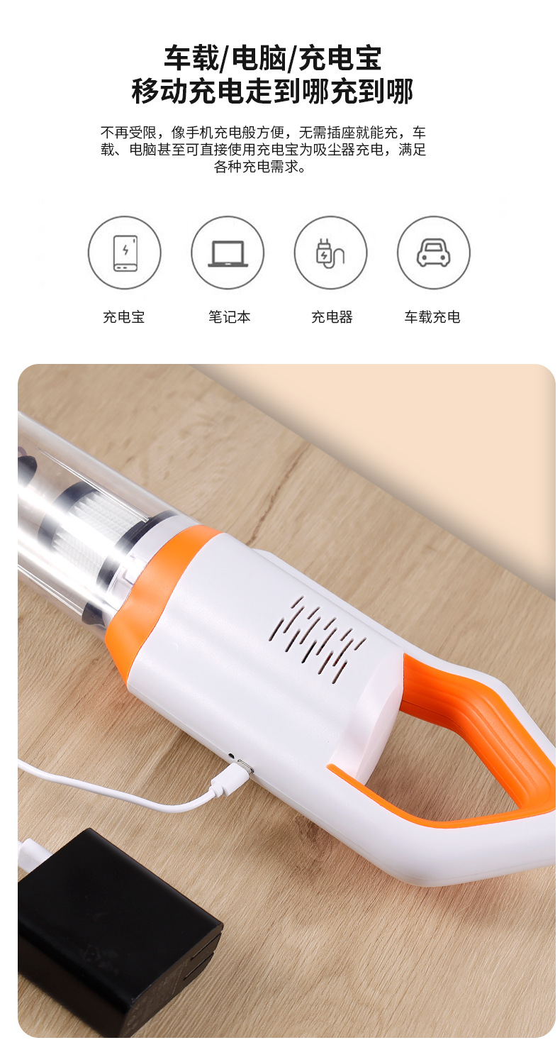 Aspirador inalámbrico hogar de mano de succión grande de alta potencia de succión de la fregona de alfombra integrada de eliminación de ácaros del pelo del coche Aspiradora