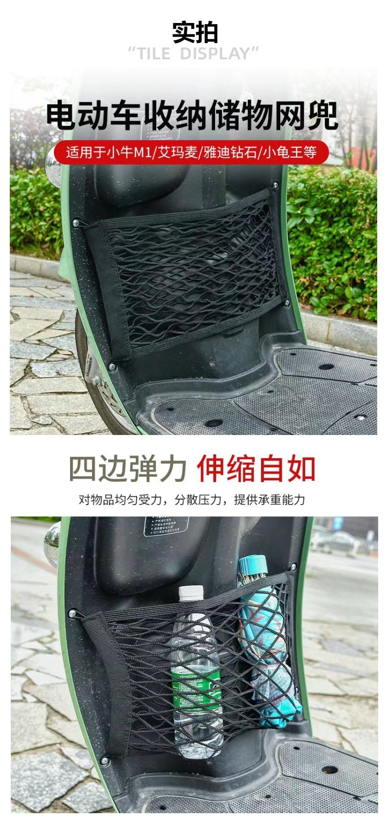 Coche eléctrico elástico neto bolsillo de doble capa bolsa de almacenamiento de tela de malla accesorios cesta frontal bolsa de almacenamiento de suministros de coche