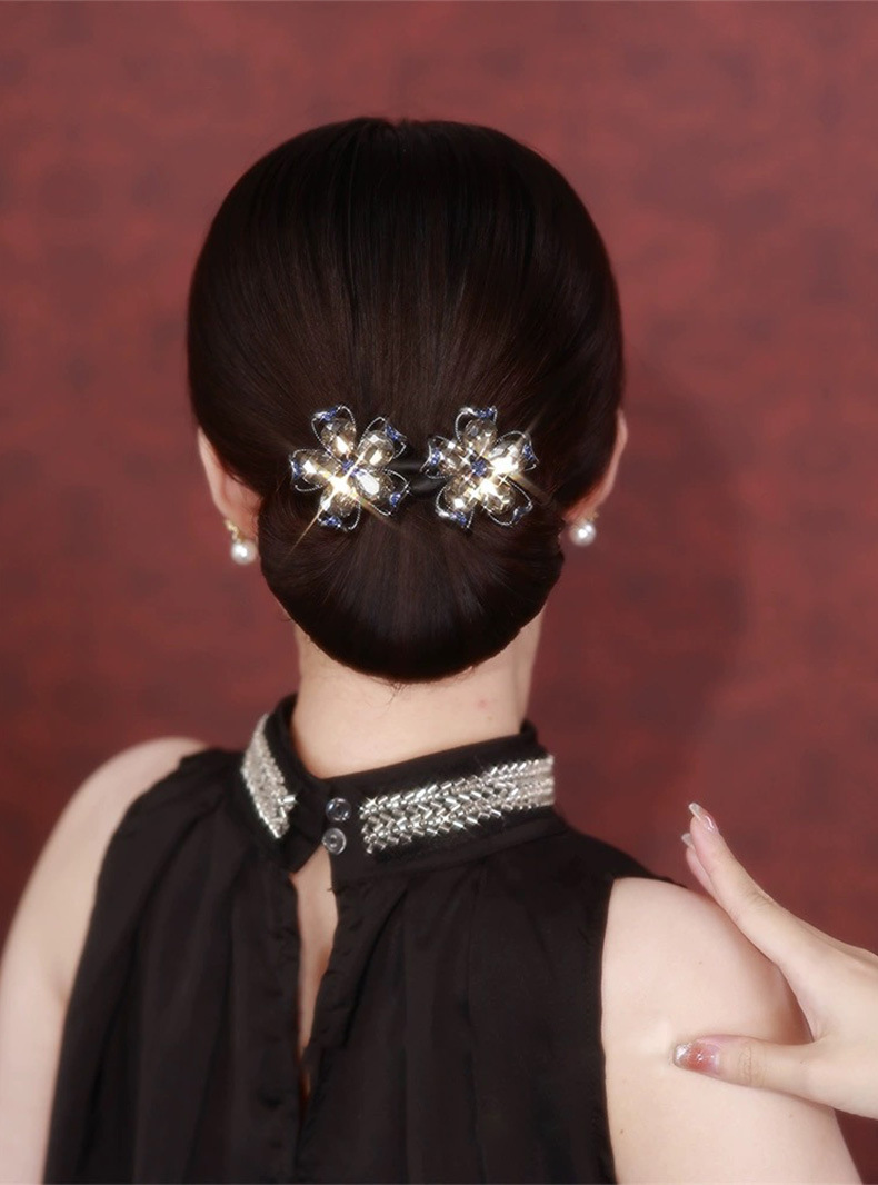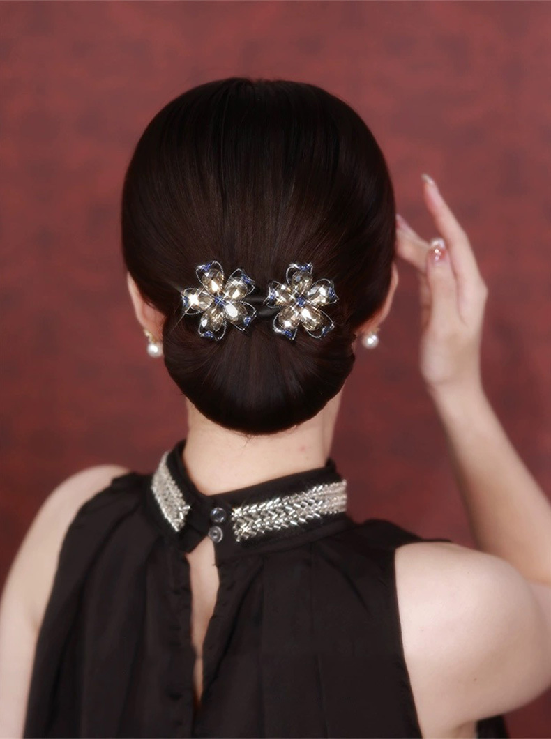 Platino Siya rizador de pelo cristal flor perezoso updo bola cabeza accesorios para el cabello 2023 Nueva gama alta hecha a mano updo varilla