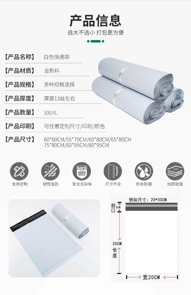 Extra grande blanco expreso bolsa 75*80 80*95 grueso impermeable logística bolsa de embalaje al por mayor expreso bolsa de embalaje