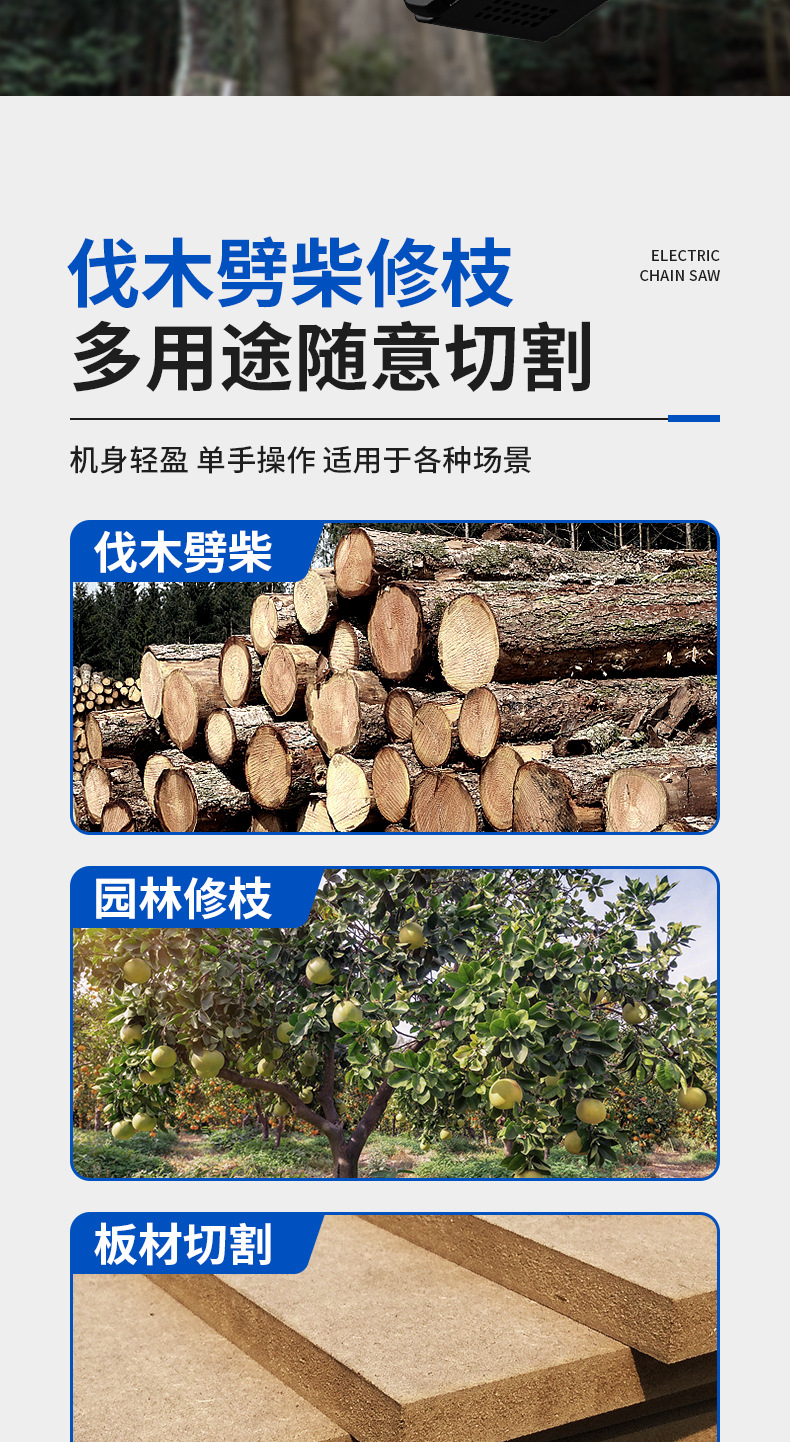 Sierra eléctrica de litio de alta potencia de Luban sierra de cadena eléctrica doméstica recargable Sierra de poda de registro portátil sierra eléctrica al por mayor transfronteriza