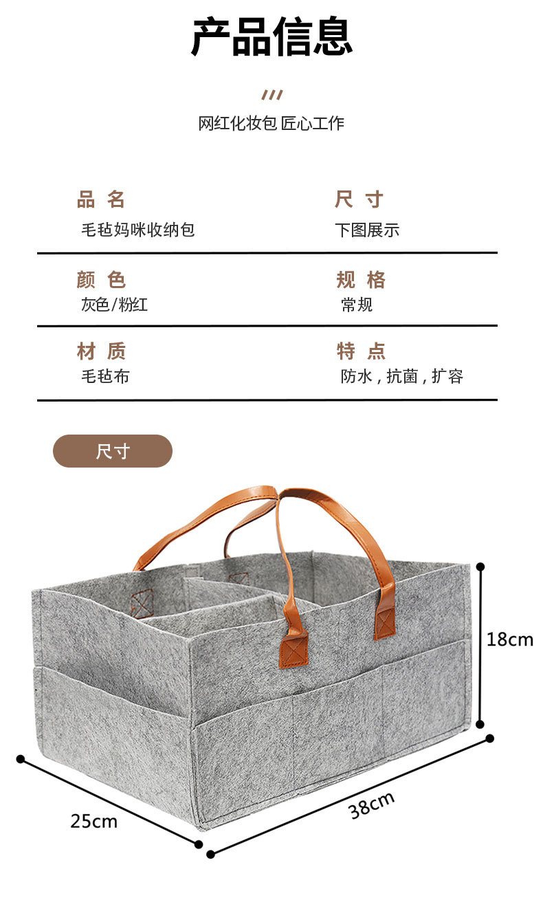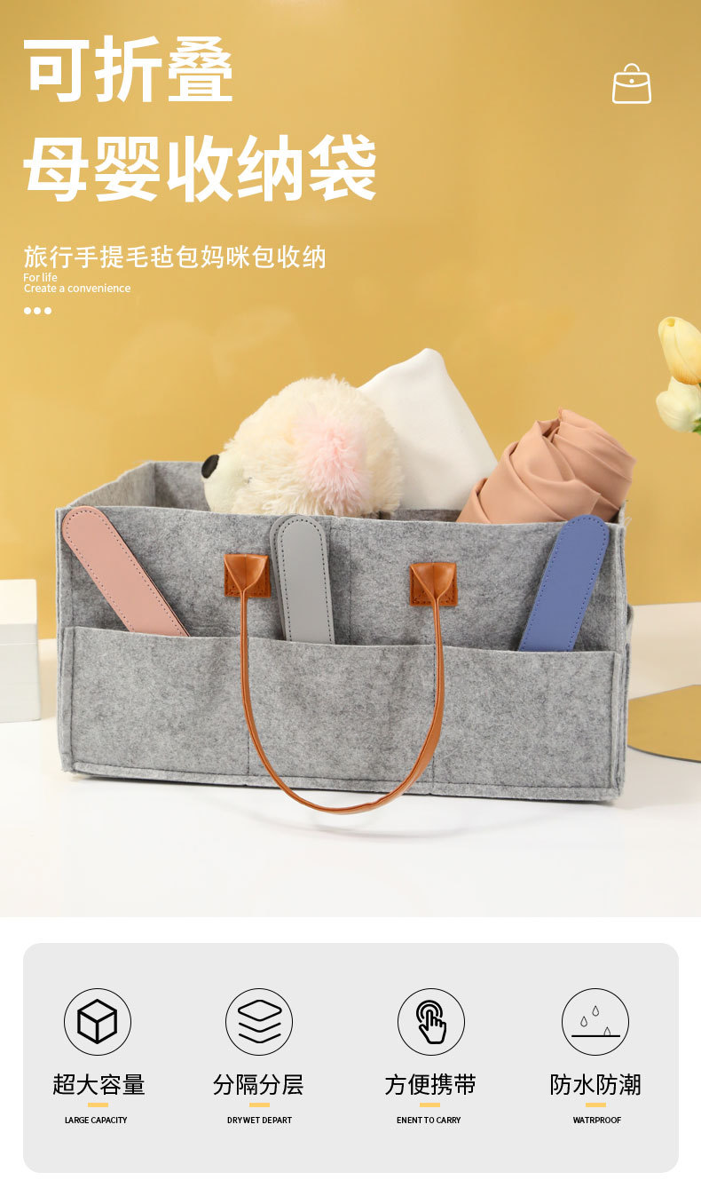Transfronterizo en stock bolsa de pañales de fieltro grande bolsa de almacenamiento de pañales bolsa de momia bolsa de almacenamiento de pañales portátil