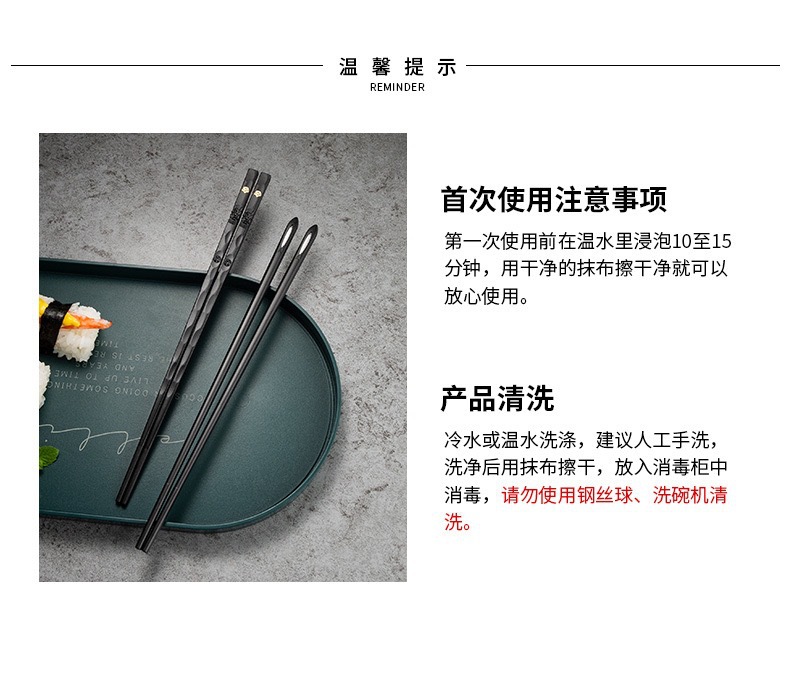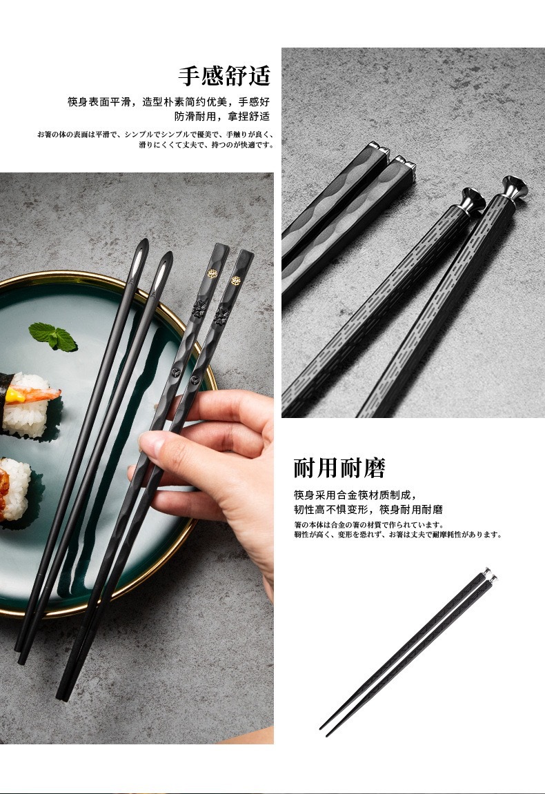 Nuevos palillos de aleación de alto aspecto a prueba de moho sin moho de alta gama de alto grado de la familia familiar una persona palillos rápido