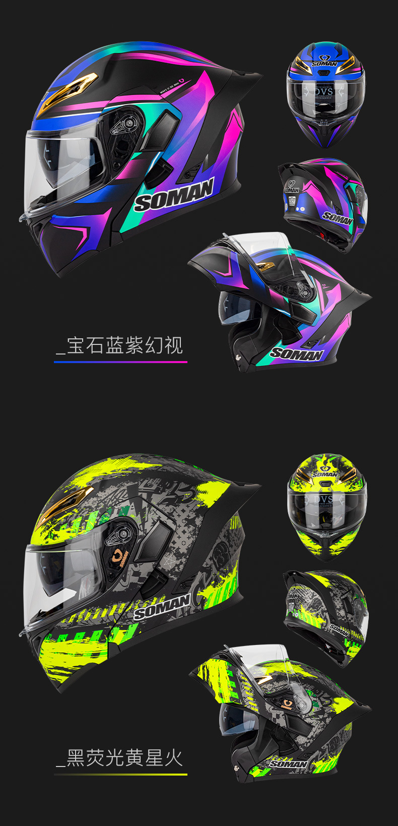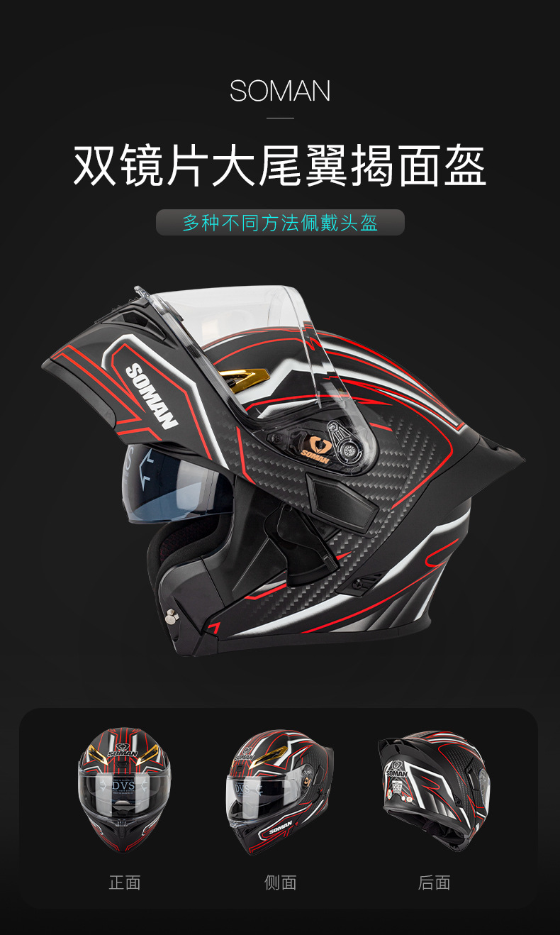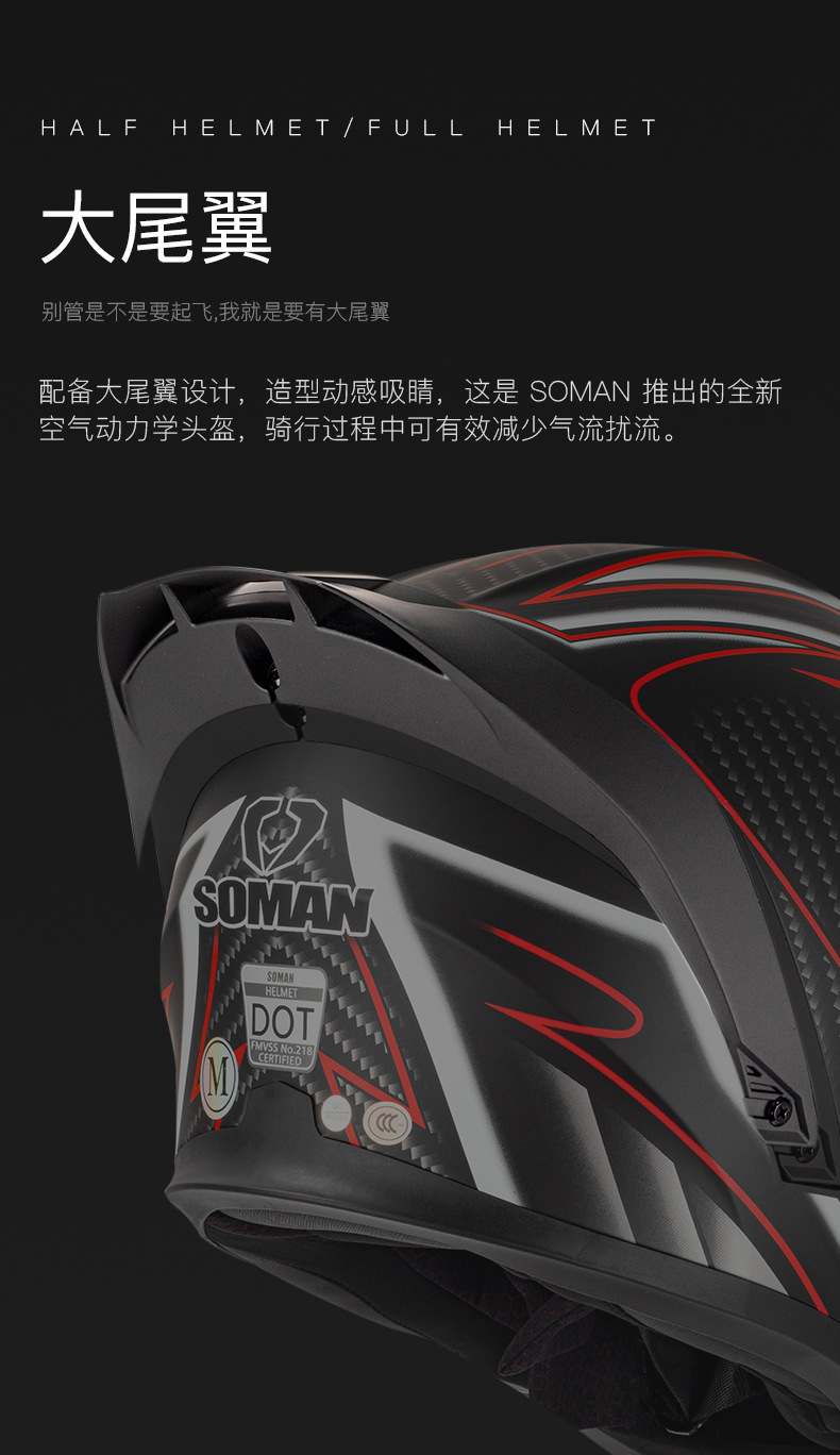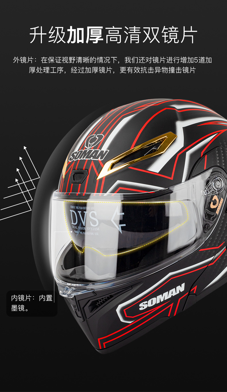 SOMAN casco de la motocicleta de los hombres y las mujeres de doble lente casco de la exposición de cuatro estaciones de montar casco completo SOMAN955-S