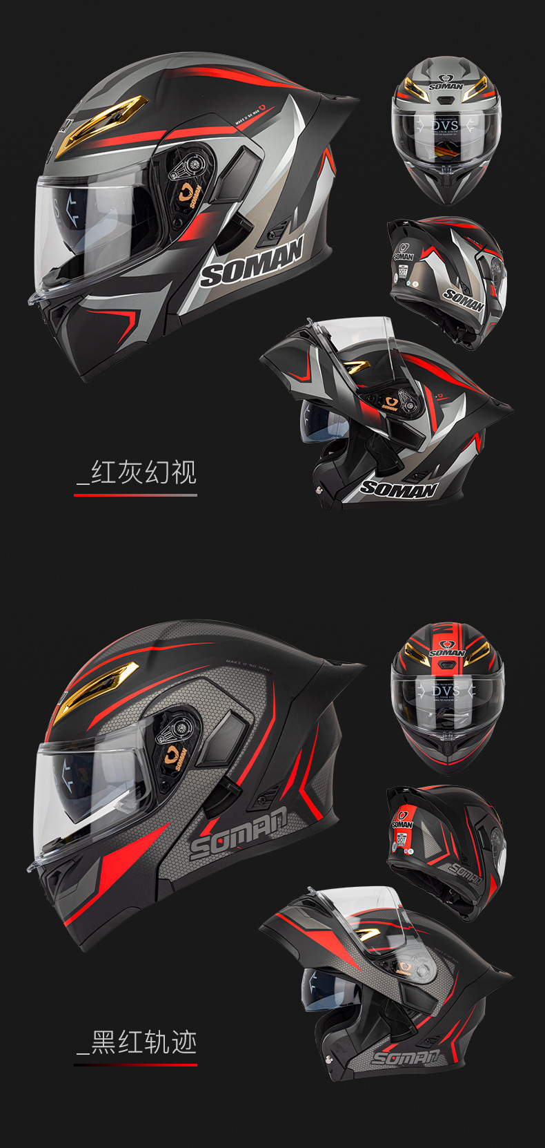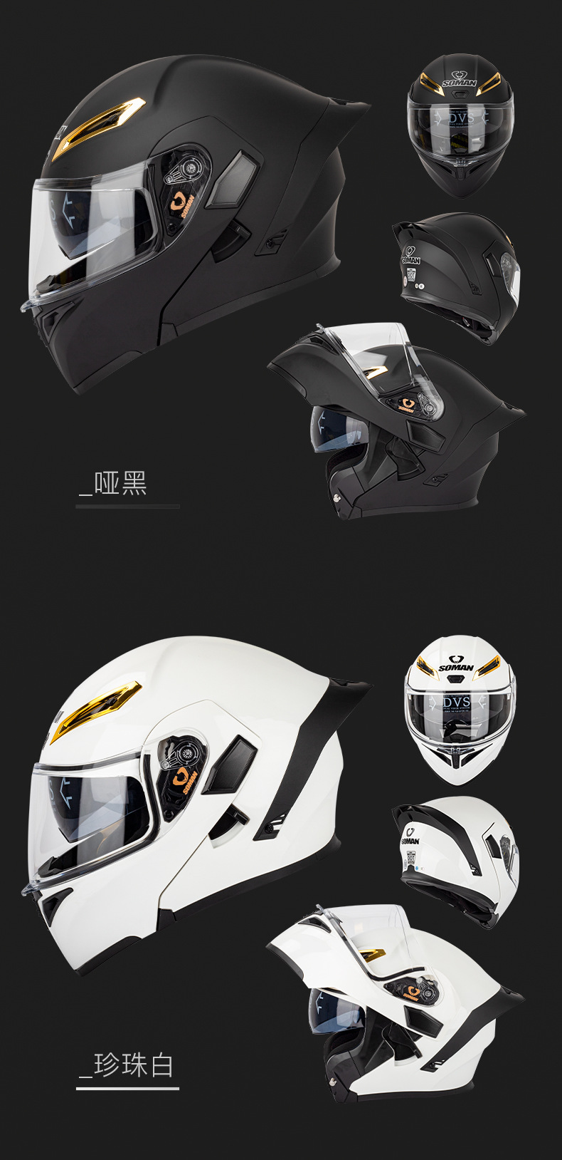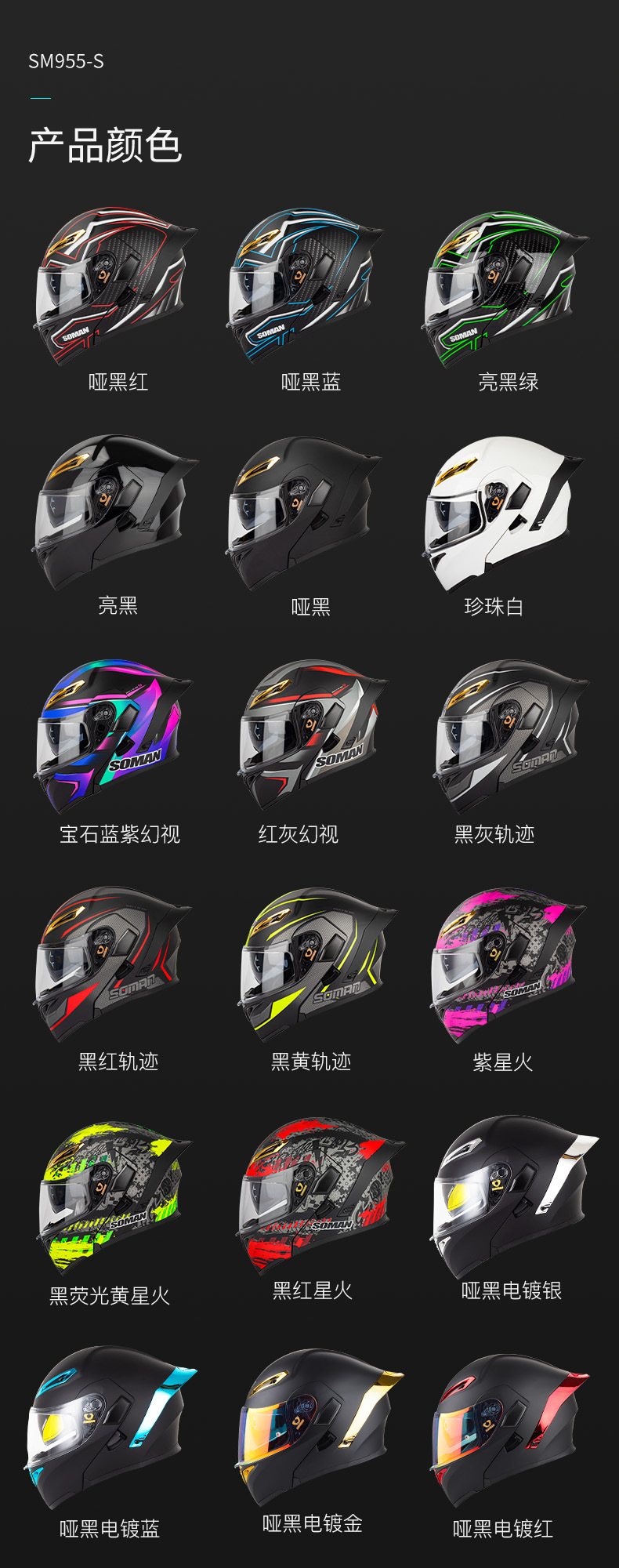 SOMAN casco de la motocicleta de los hombres y las mujeres de doble lente casco de la exposición de cuatro estaciones de montar casco completo SOMAN955-S