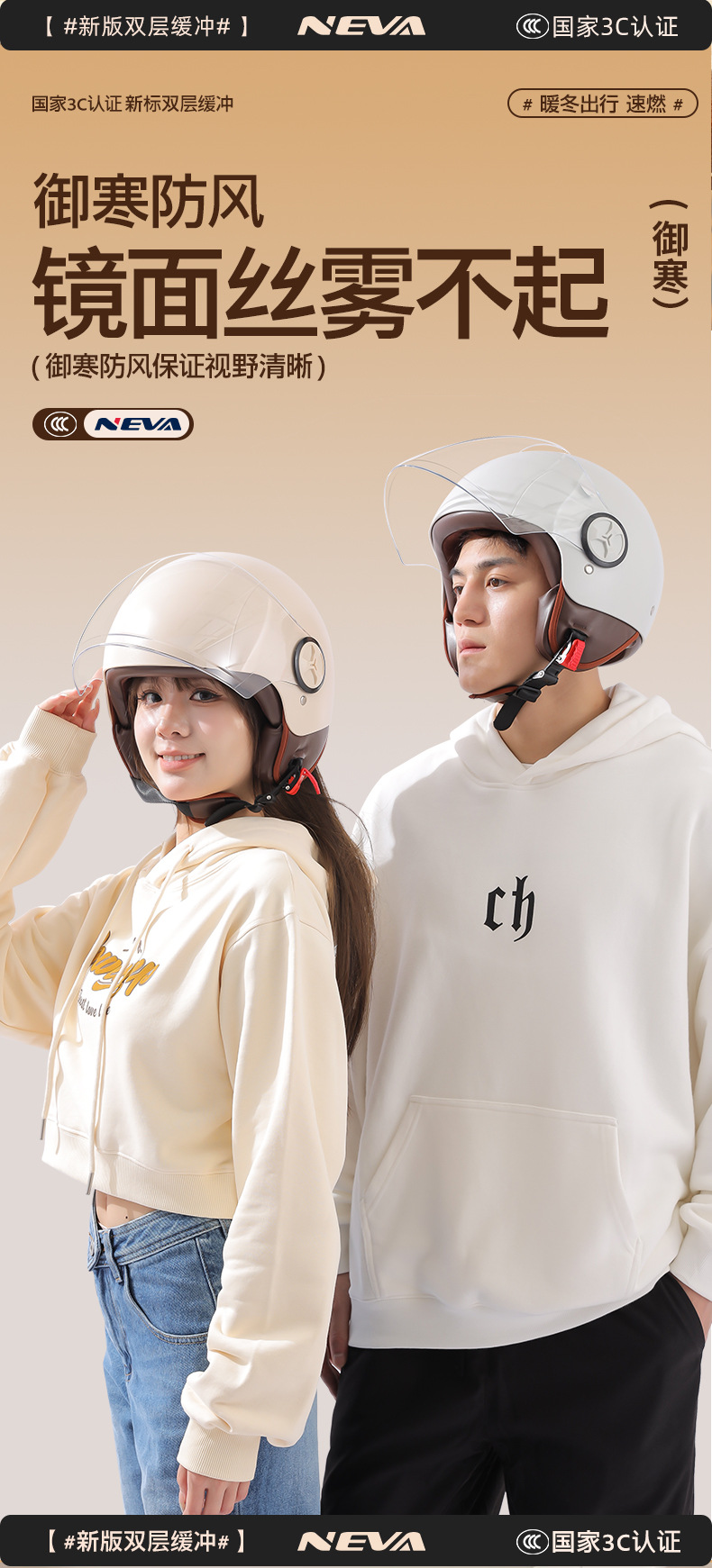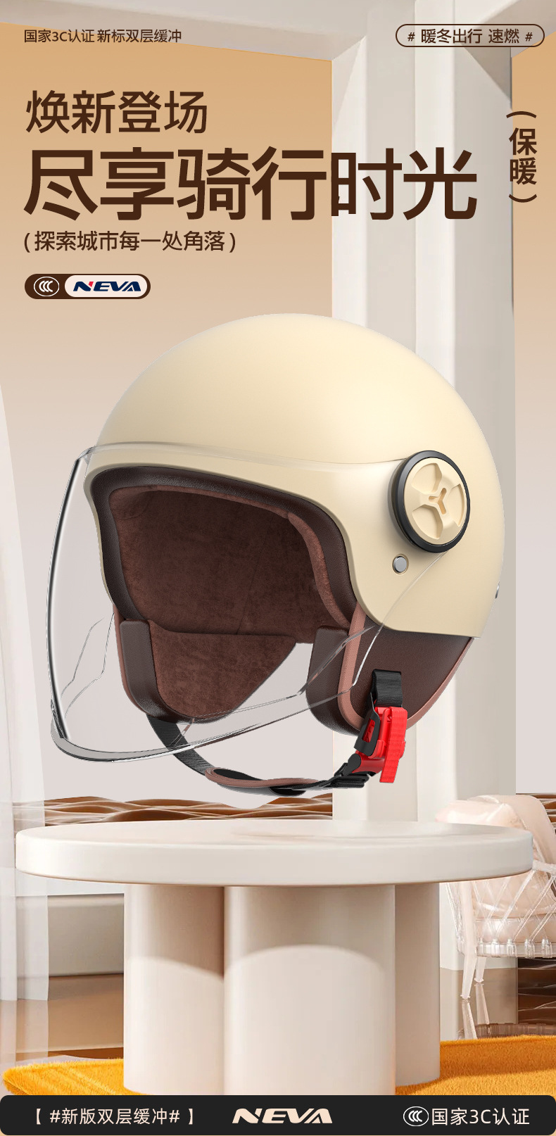 Casco de coche eléctrico hombres y mujeres 3C certificado invierno medio casco caliente Four Seasons universal retro batería casco de la motocicleta