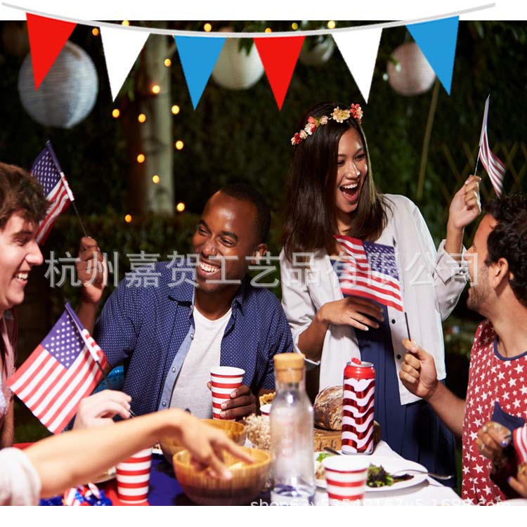 Día de la Independencia Americana decorativo tire de la bandera rojo blanco azul de tres colores de la bandera de colores triángulo cadena de la bandera de la cadena Bandera de colores