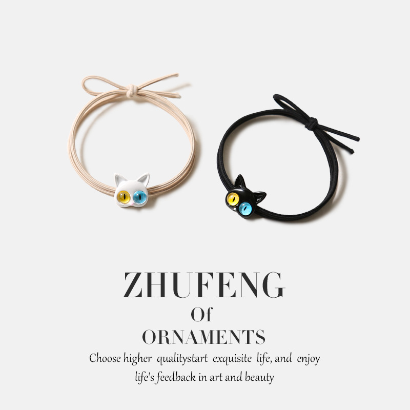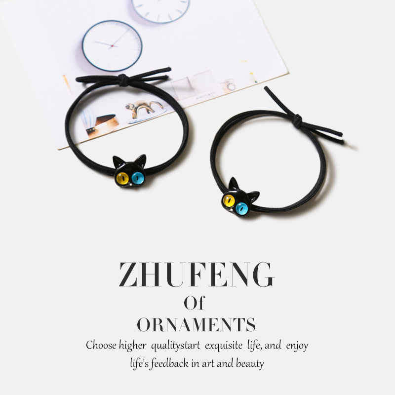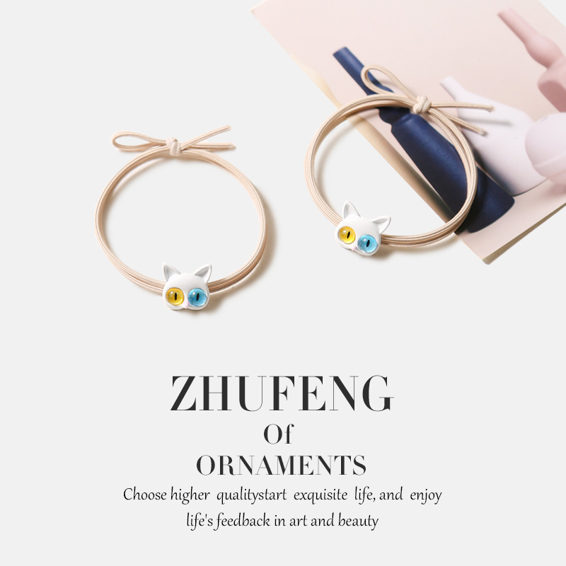 Dos colores pupila ojo grande gato cabeza cuerda hembra lindo de dibujos animados japonés y coreano simple todo partido aleación cabeza chica pelo corbata tocado