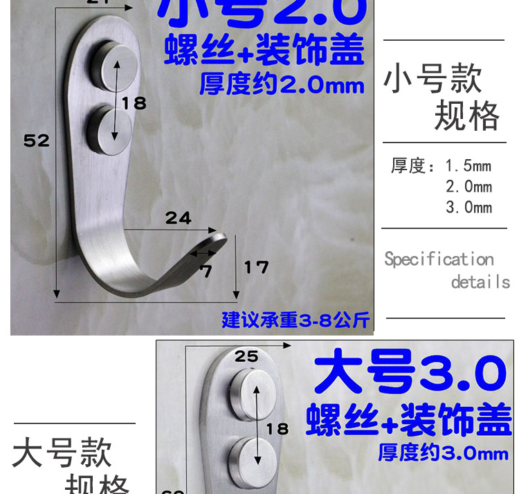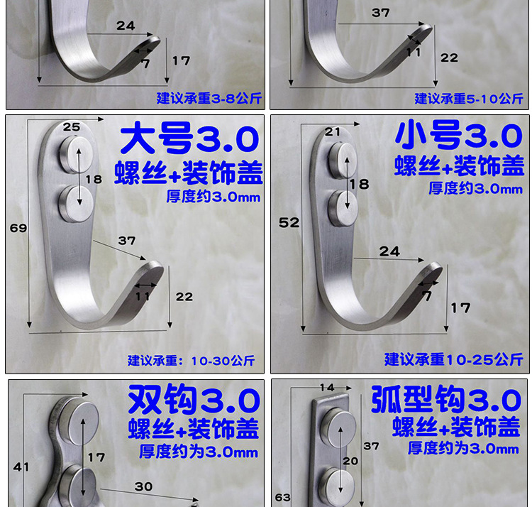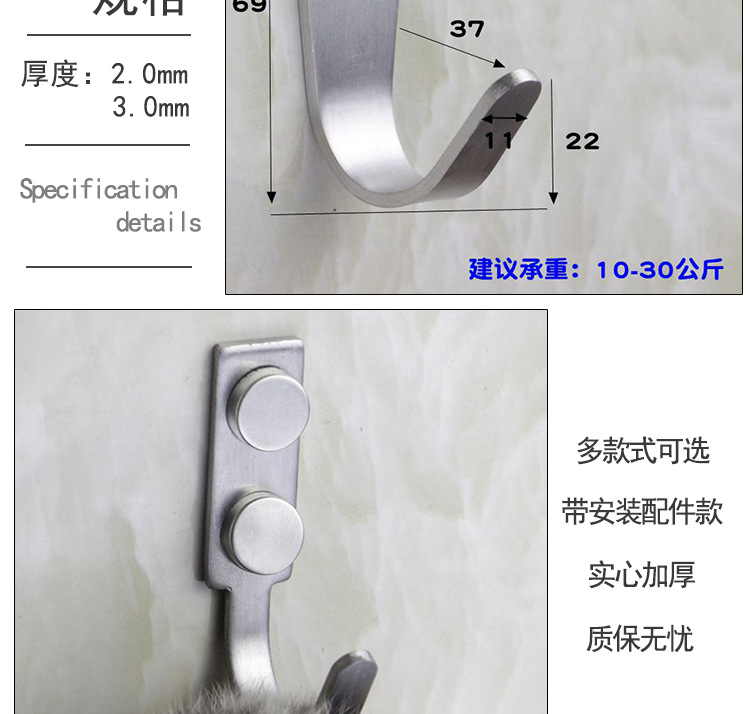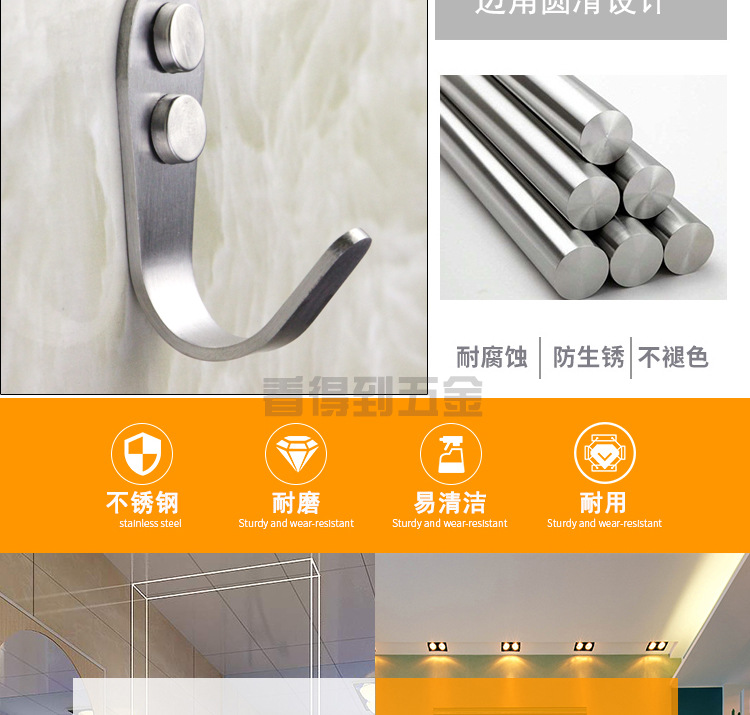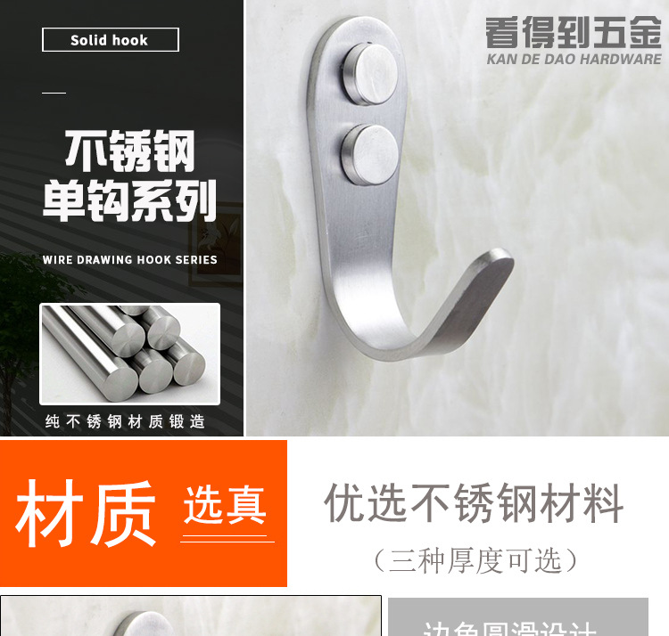 Gancho de ropa de acero inoxidable gancho único gancho de ropa sólida gancho familiar Hotel cocina baño colgando gancho de ropa