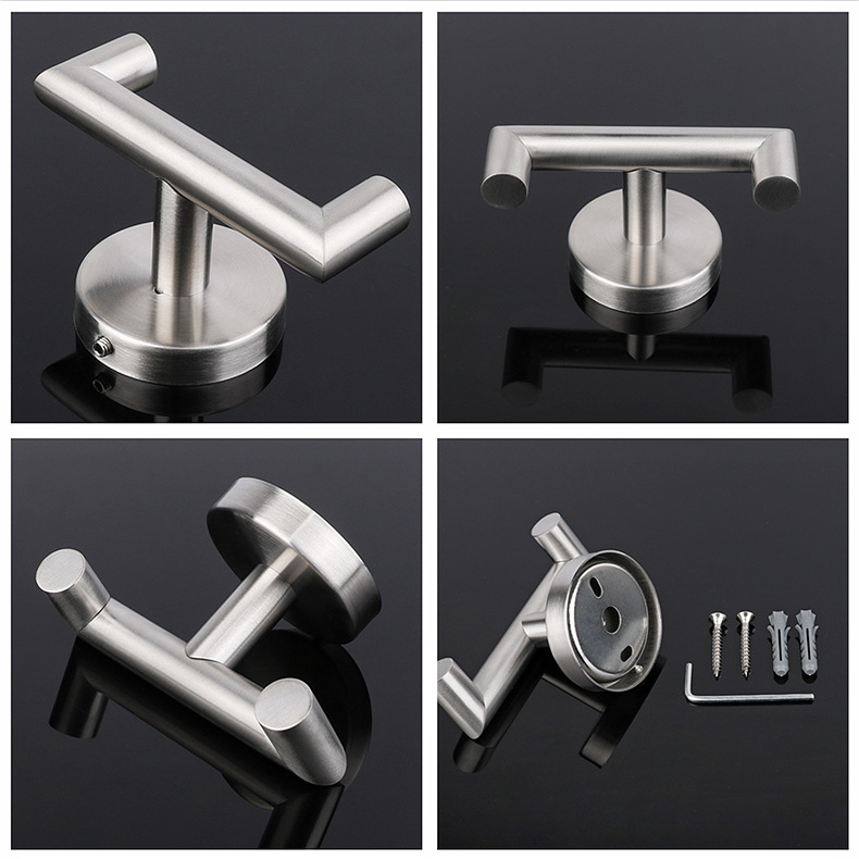 Baño de metal negro doble toalla gancho de acero inoxidable baño creativo gancho de pared detrás de la puerta gancho de ropa