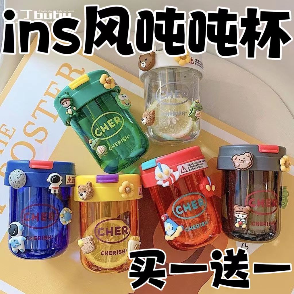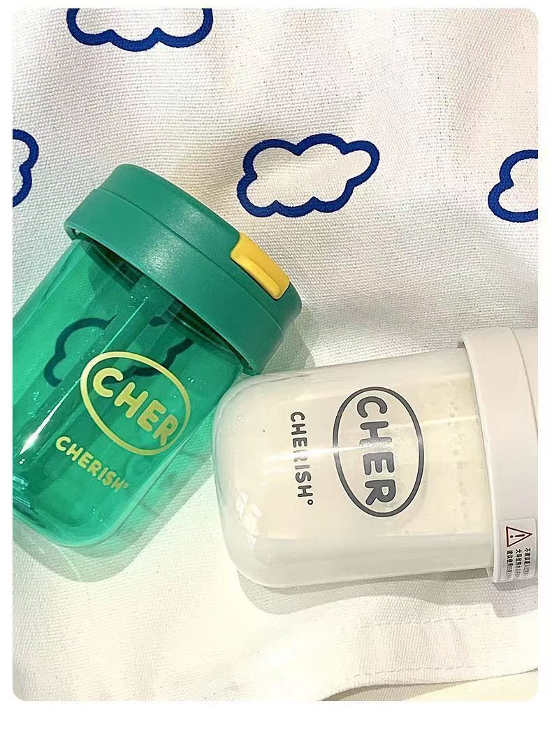 INS simple taza de plástico de alto aspecto lindo mini pequeño estudiante hervidor de agua portátil taza de paja pareja taza portátil