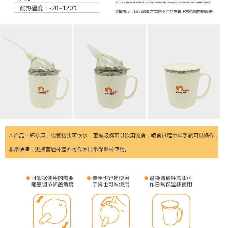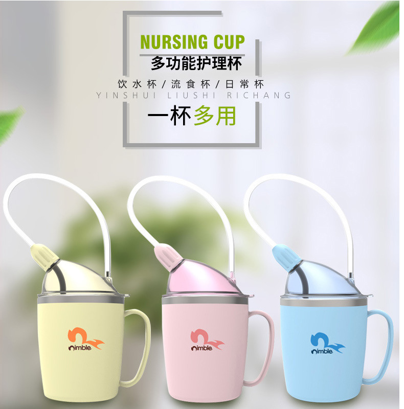 Cama-acostado ancianos agua potable anti-estrangulamiento cuidado Copa parálisis paciente a prueba de fugas líquido comida Taza con tapa paja materna Taza aislamiento