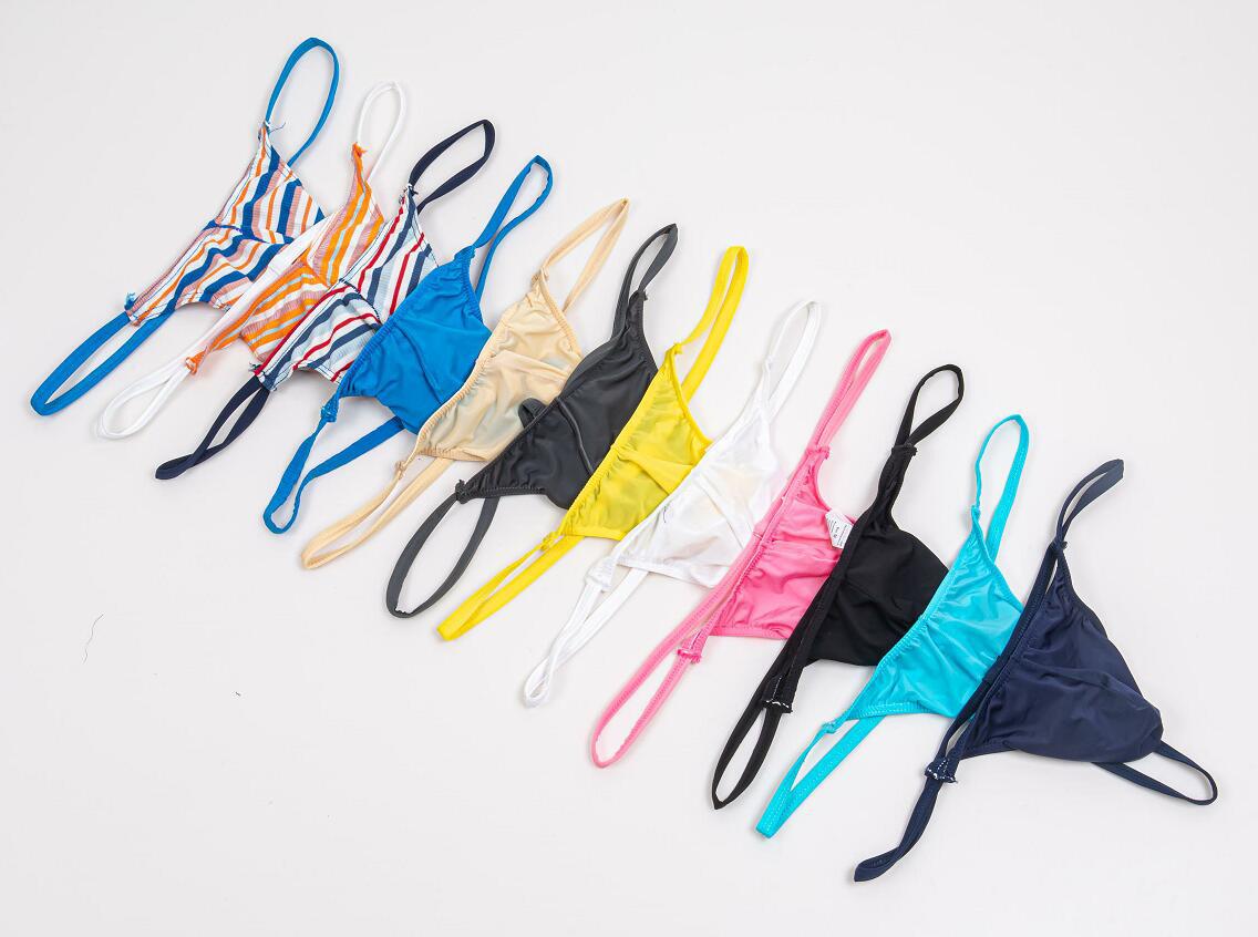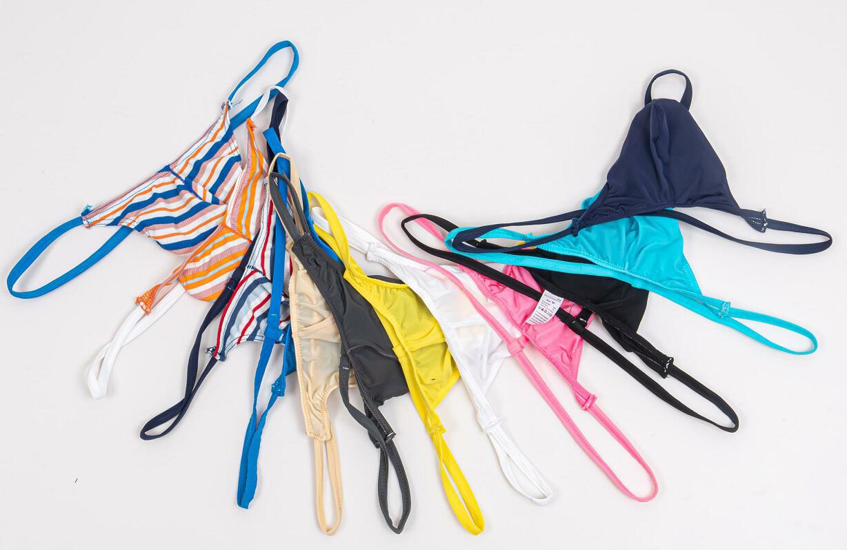Ropa interior masculina de cintura baja, fresca y sexy, de seda helada, con anillo JJ, tanga multiusos con forma de U convexa, E068
