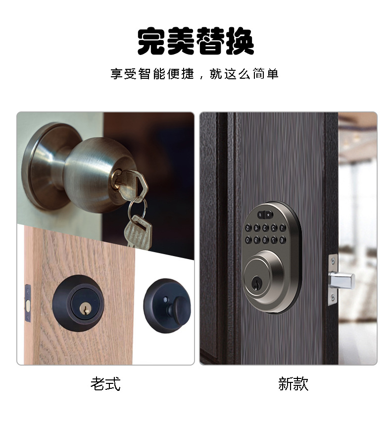 Cerradura Inteligente para Puerta Principal Estilo Americano con Teclado Electrónico de Contraseña, Cerradura Auxiliar, Fabricante, Apertura y Cierre Automático de Puerta Transfronterizo