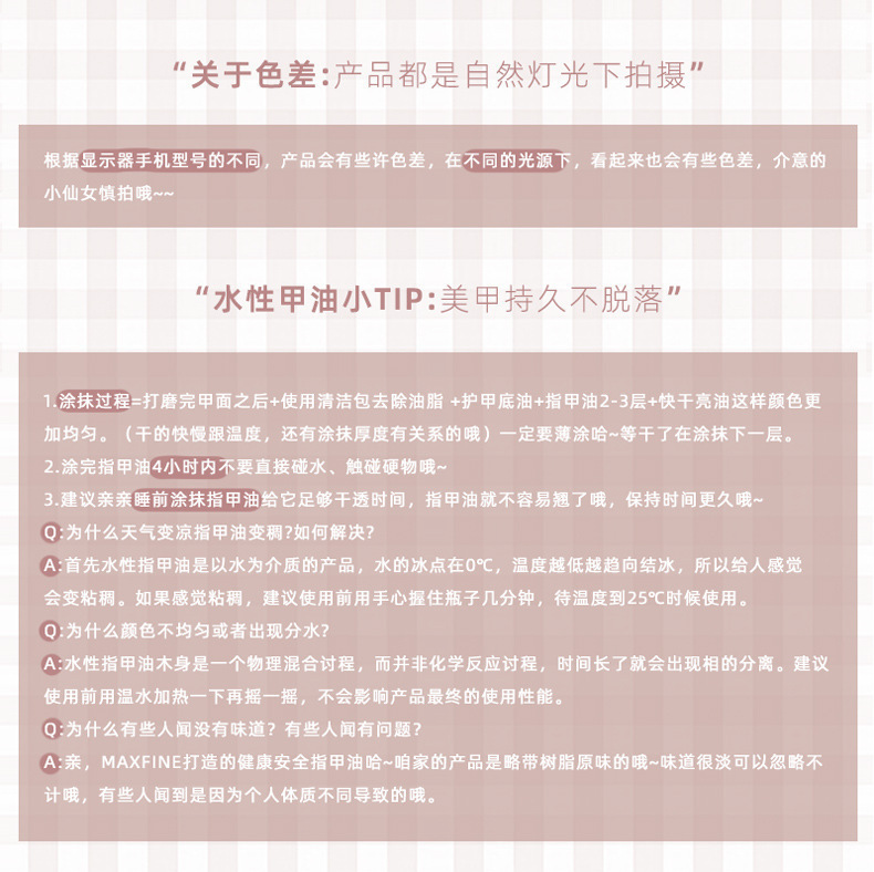 | Color | Maestro postre V01,Señorita V02,V 03 meses color descalificación,V04 tienda de flores clientes habituales,Tulipán rico V05,V06 montañas y ríos,V07 Corazón de las niñas,V08 campo crema,Conferencia de fuegos artificiales V09,V10 absurdos comentarios de apertura,V13 guardia Caballero,V14 mousse de chocolate,V15 villano,Notas de viaje de sueño V16,Onda de cristal de barro V17 Taro,V18 primavera caleidoscopio,V19 Zichuan estrella fugaz Río,V20 Luna y Sixpence,V21 chica crema,V22 carta de verano,V23 Princesa en fuga,Helado de sal marina V24,Té de azúcar marrón V25 (Super White) |