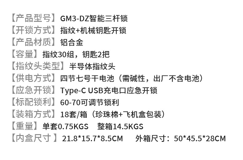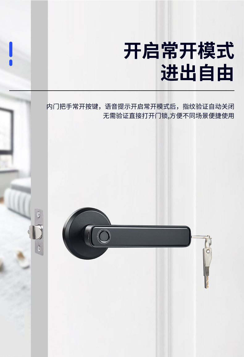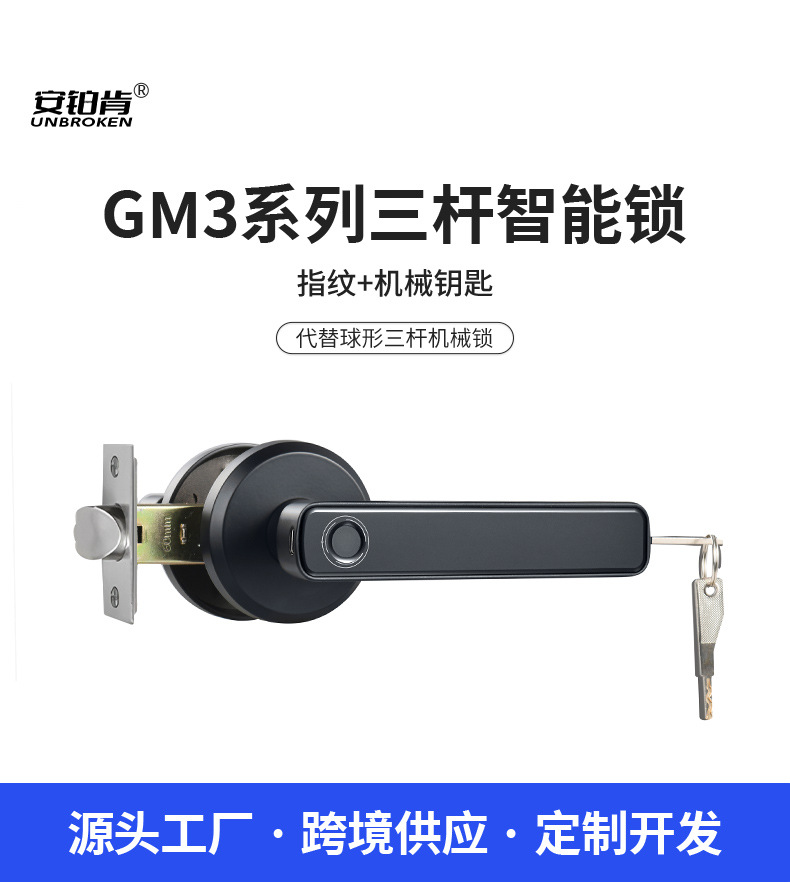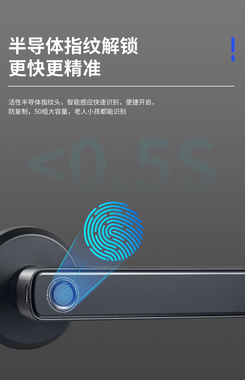 Cerradura de huella digital semiconductora transfronteriza, modelo silencioso negro de tres barras, cerradura electrónica inteligente para puertas de madera de dormitorio, dropshipping disponible.