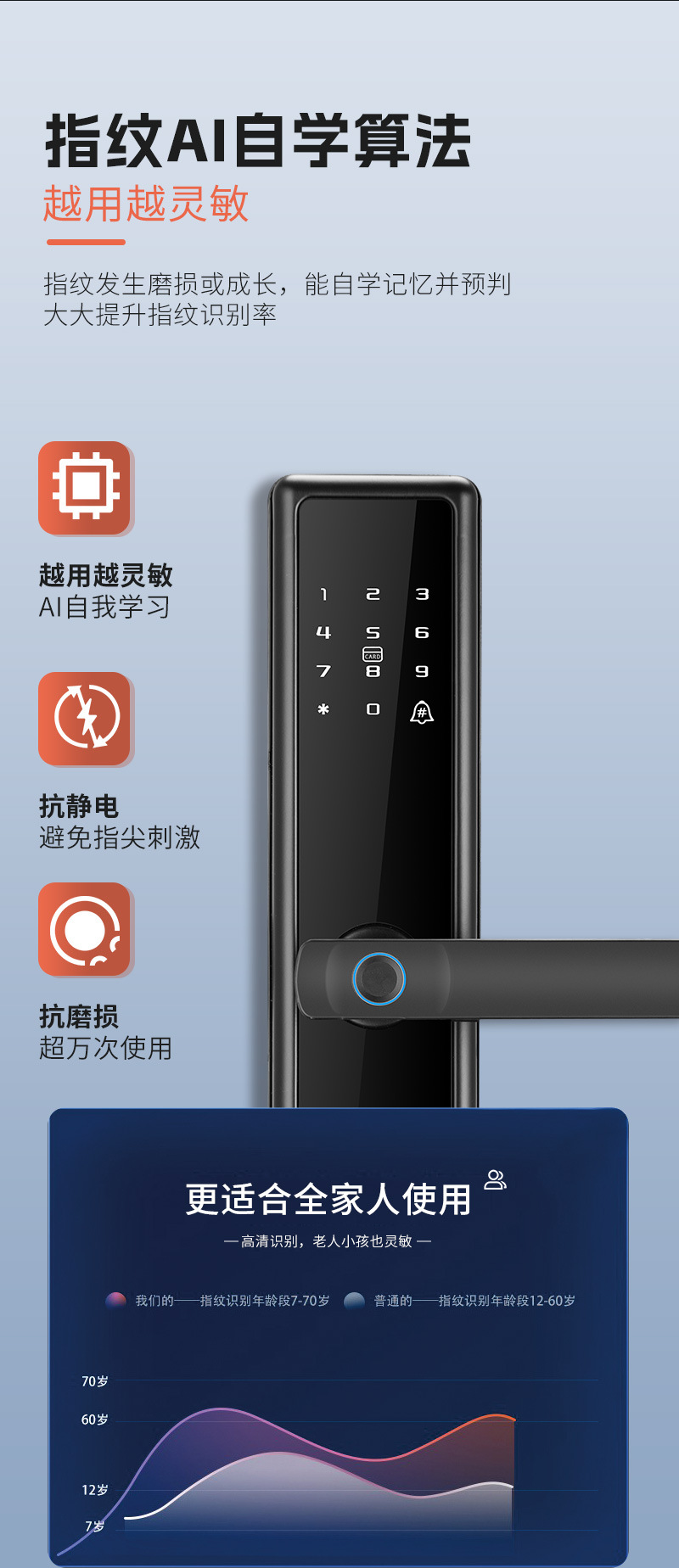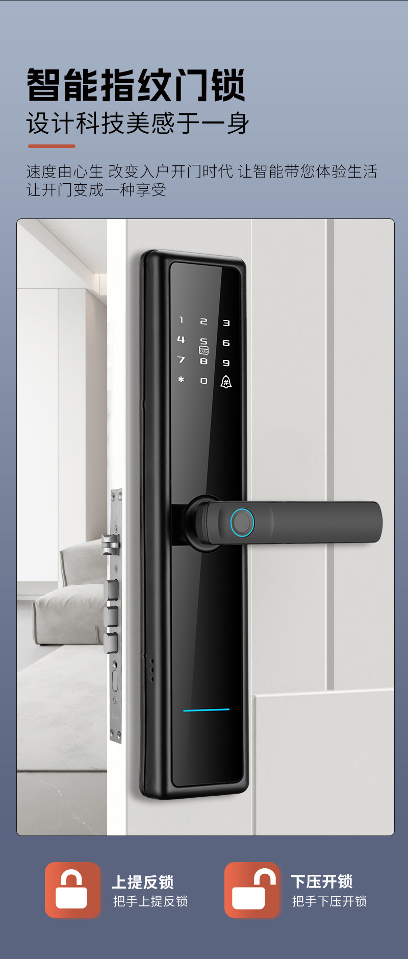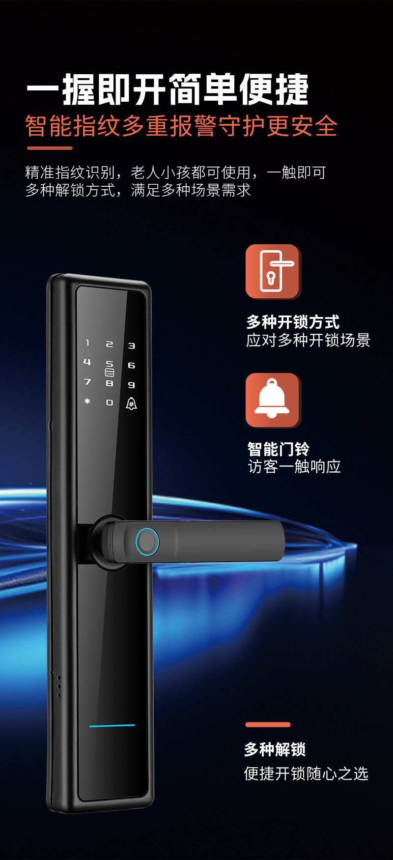 Cerradura inteligente con huella digital wifi de un solo toque, fabricante de origen, para casa, hotel, B & B, aplicación antirrobo, contraseña remota