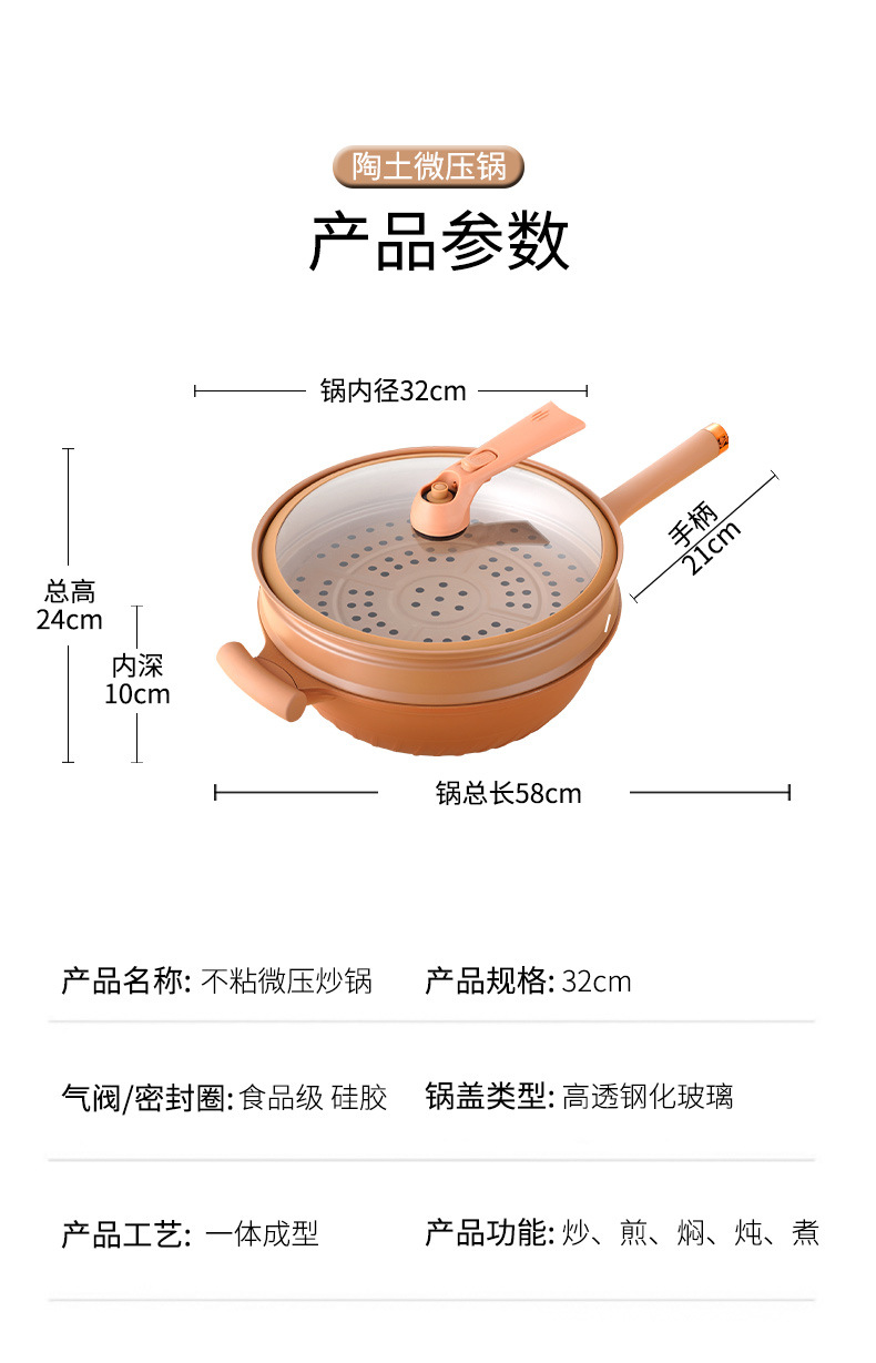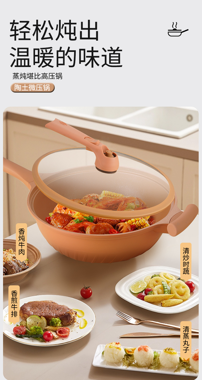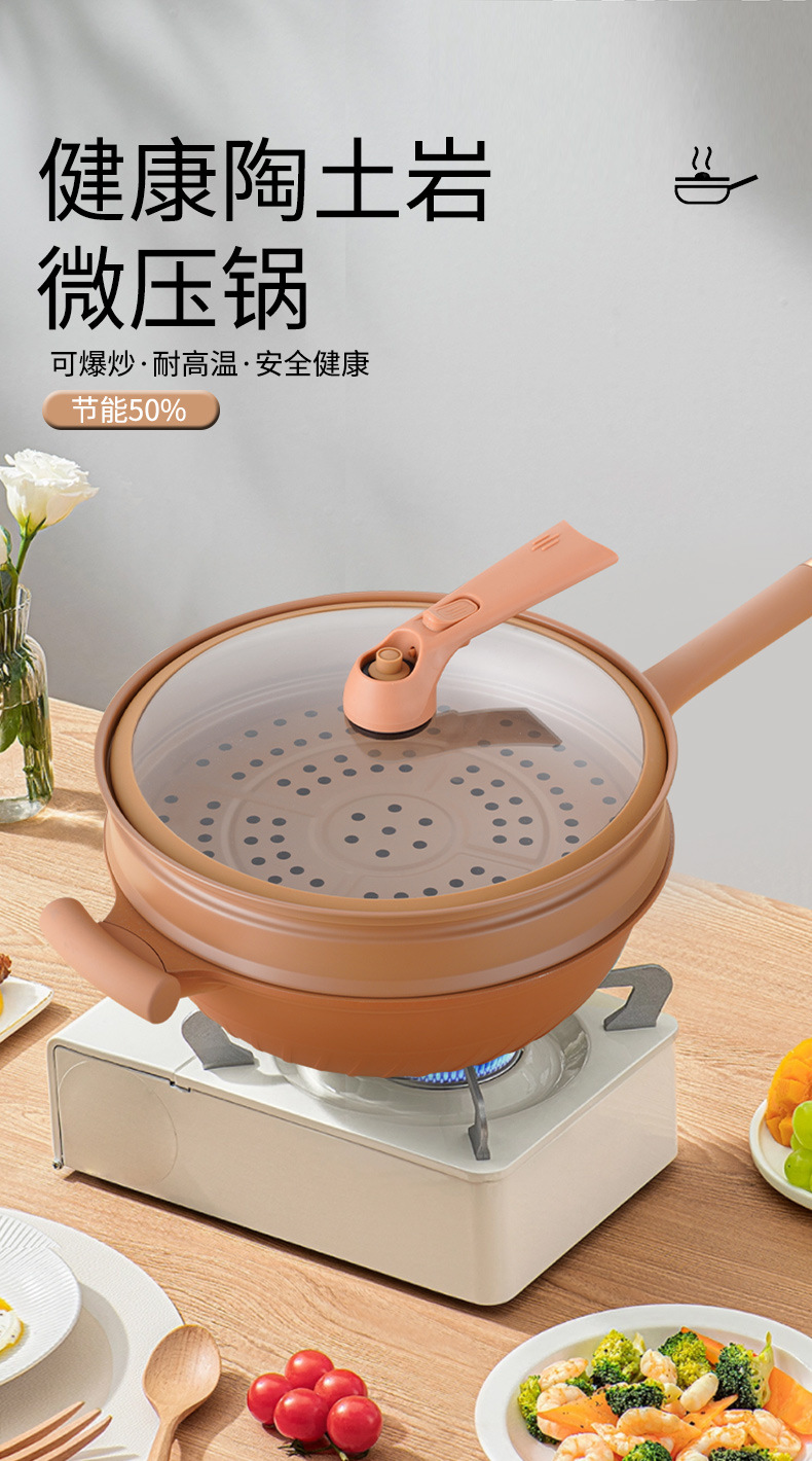 Tiktok mismo estilo arcilla micro presión olla hogar multifuncional antiadherente wok con vapor de gas eléctrico aplicable suministro directo de fábrica