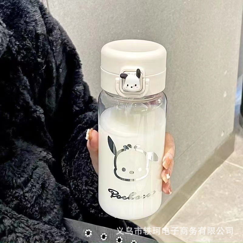 Lindo de dibujos animados perro Pacha taza portátil hembra portátil taza de paja transparente portátil de plástico para niños taza de agua taza de pareja