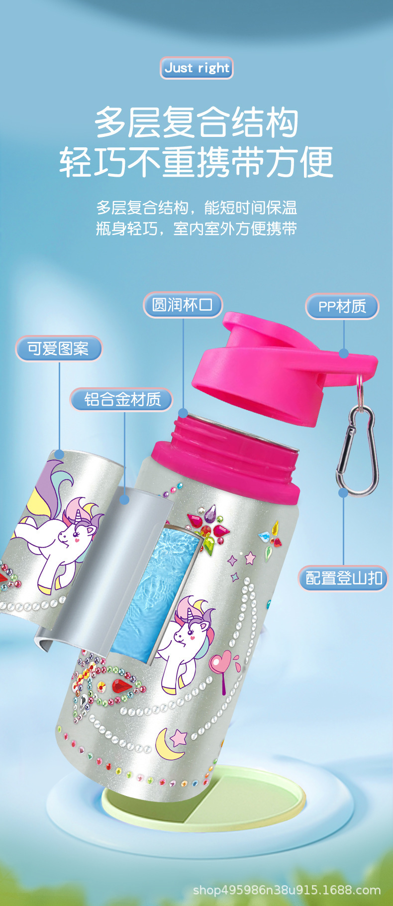 Botella de agua decorativa hecha a mano con diamantes de imitación para niños, éxito de ventas transfronterizo, divertida botella de agua con decoración de grafiti DIY, juguete interactivo para padres e hijos.