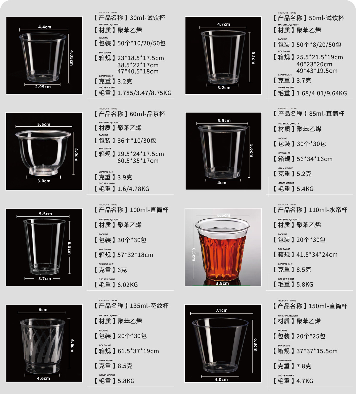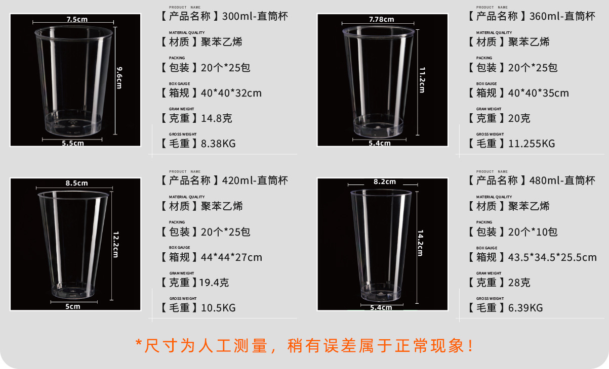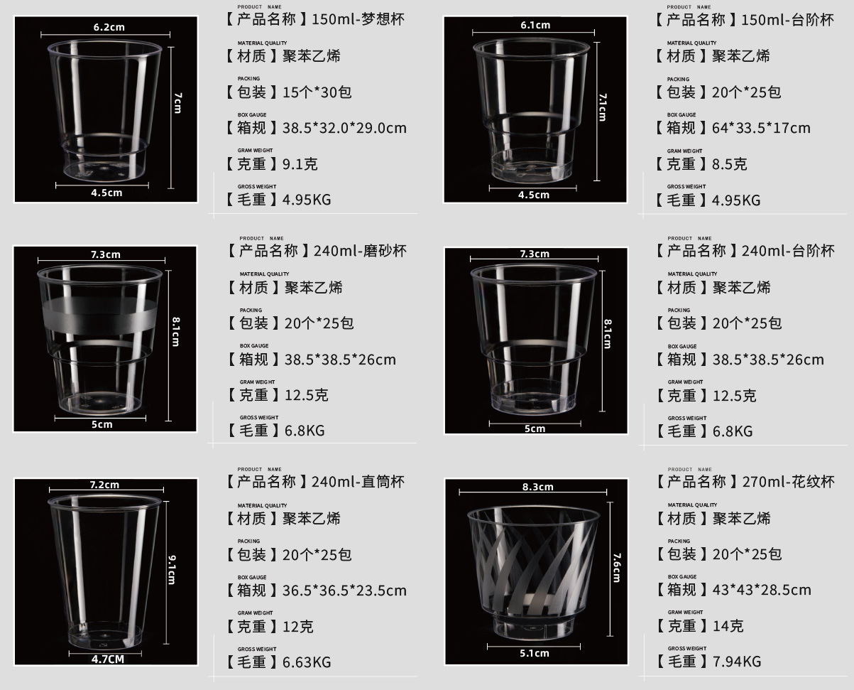 | color | 500 unidades de vasos de degustación engrosados de 30 ml.,1000 unidades de vasos de degustación engrosados de 30 ml.,Vaso de degustación económico de 30ml (2500 piezas),Vasos de degustación engrosados de 30 ml, 2500 unidades.,400 unidades de vasos de degustación engrosados de 50 ml.,Vasos de degustación engrosados de 50 ml, 1000 unidades.,Vaso de degustación económico de 50ml (2500 piezas),Vasos de degustación engrosados de 50 ml, 2500 unidades.,500 copas de degustación de vino engrosadas de 50 ml.,360 tazas de té de 60 ml,1080 tazas de té de 60 ml,Vaso recto de 85 ml, 900 unidades.,Vaso recto de 100 ml, 900 unidades.,Vaso cortina de agua 110ML 600 piezas,Taza con diseño de 135 ml, 600 unidades.,Vaso recto de 150 ml, 500 unidades.,Exfoliante paso a paso de 150 ml, 500 unidades.,Vaso medidor de 150 ml, 500 unidades.,150 vasos de ensueño (gruesos), 450 unidades.,500 tazas rectas extra gruesas de 150ml,Vaso recto 240ML 500 piezas,Vasos esmerilados de 240 ml, 500 unidades.,Vaso escalonado 240ML 500 piezas,500 piezas de vasos con patrón de 270ML,Vaso recto 300ML 500 piezas,300 tazas rectas de 360ML,Vaso recto 420ML 500 piezas,200 piezas de vasos rectos de 480ML,Vaso cortina de agua de 110 ml (tubo de PVC mejorado) 20 tubos,Vaso con patrón de 135 ml (tubo de PVC mejorado) 20 tubos,Vaso dosificador de 150 ml (tubo de PVC mejorado) 20 tubos,Paso de 240 ml (tubo de PVC mejorado) 20 tubos,Tubo recto de 240 ml (tubo de PVC mejorado) 20 tubos,240ml esmerilado (tubo de PVC mejorado) 20 tubos |