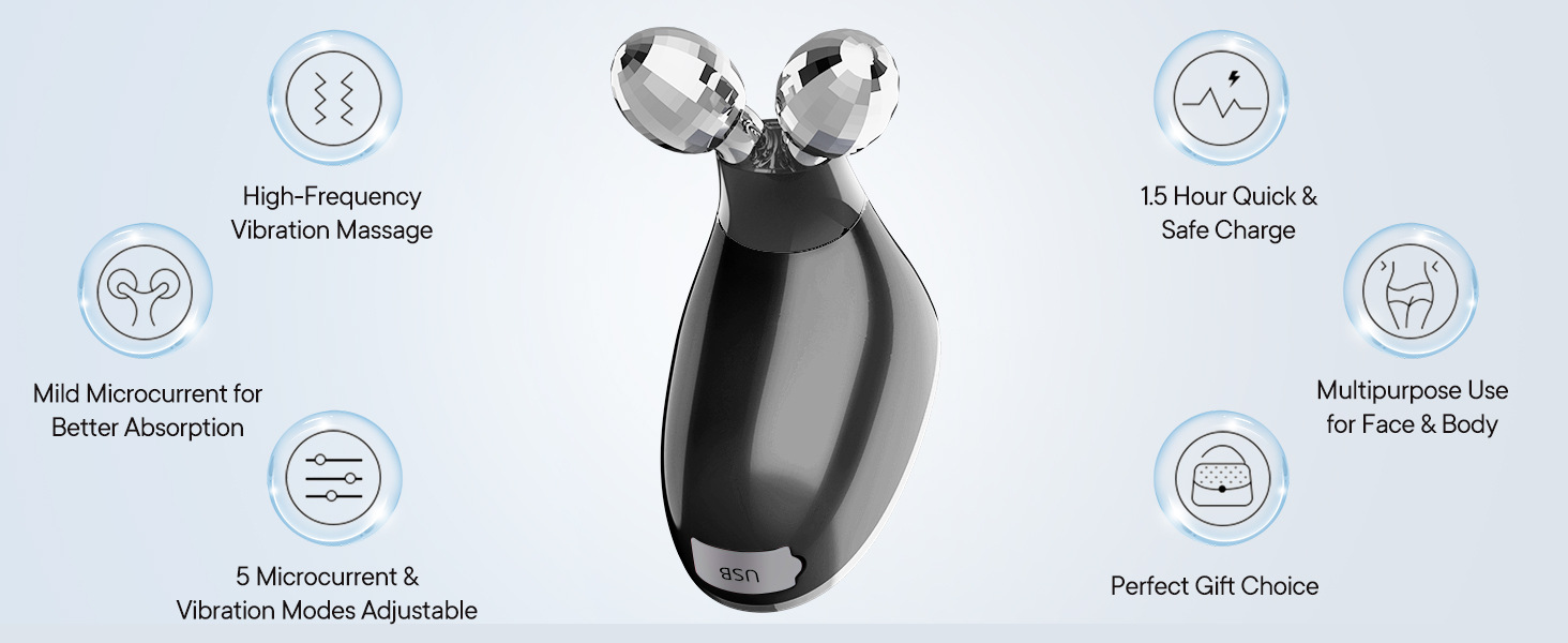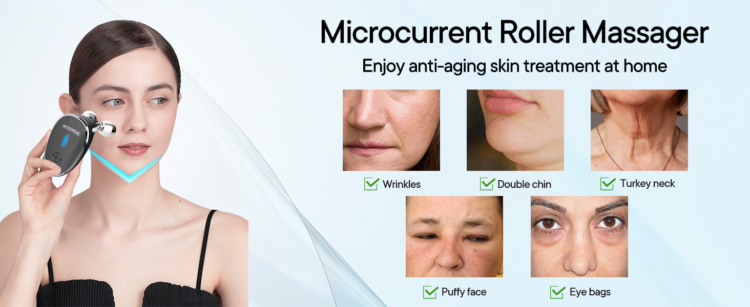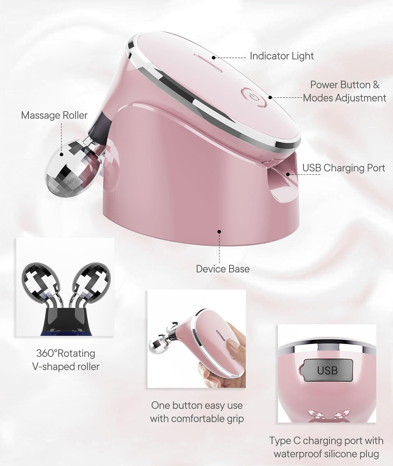 Dispositivo de belleza de microcorriente transfronterizo con rodillo para rostro, masajeador facial de microcorriente EMSV.