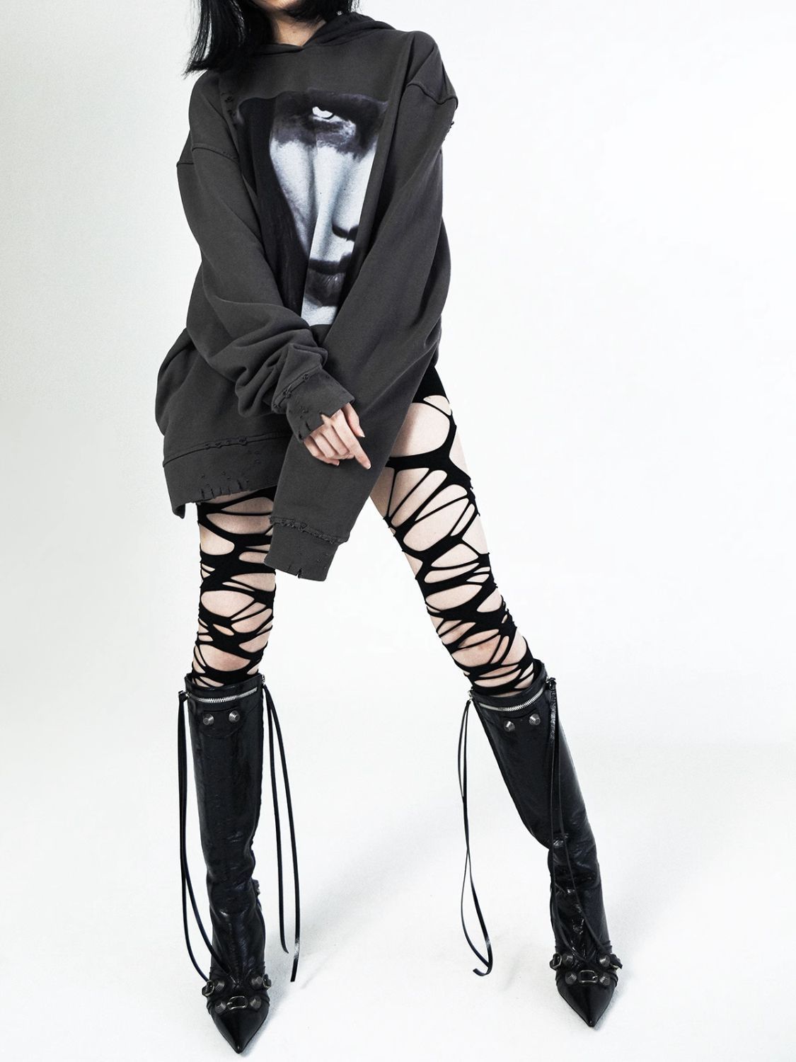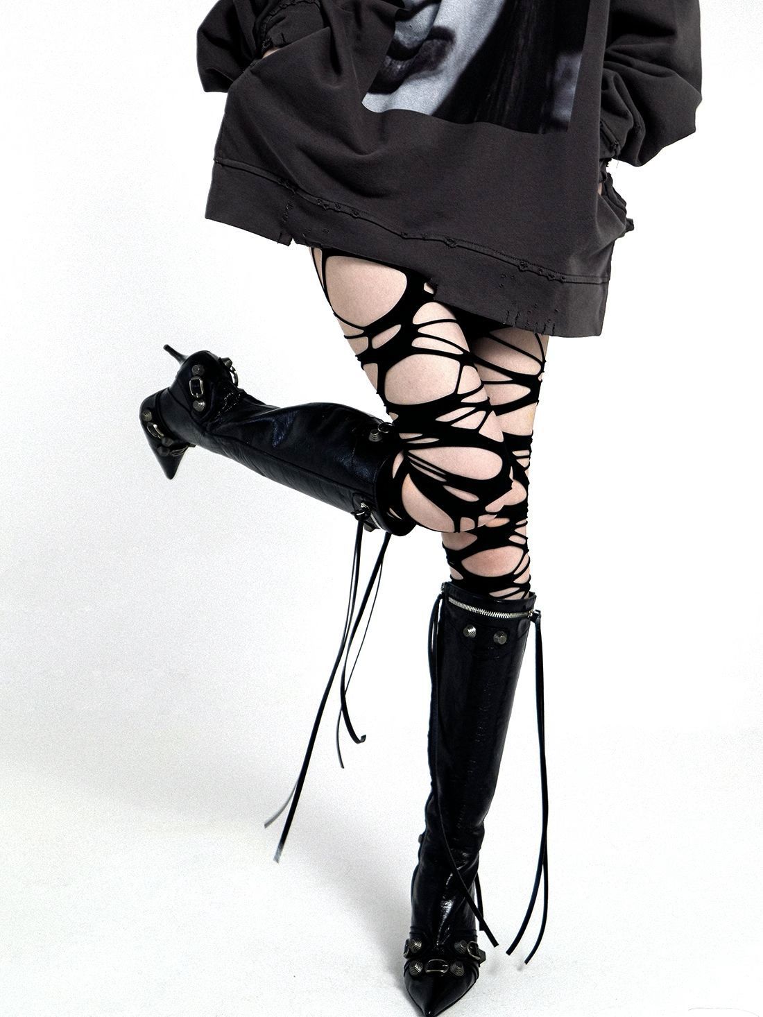 Medias de seda de las mujeres delgadas negro punk estilo gótico anti-enganche roto red de pesca y2g Milenio chica caliente ins pantimedias
