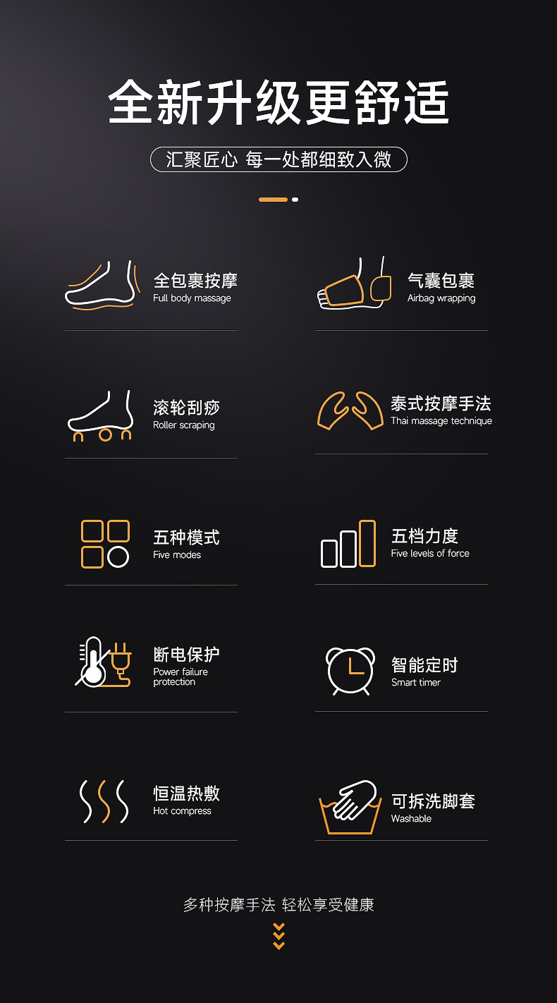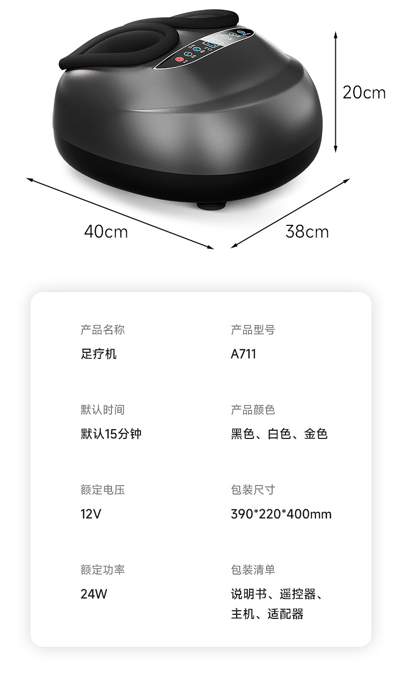 | Colores | Edición Oro de Lujo (5 Niveles de Intensidad + 6 Temporizadores Inteligentes + 6 Técnicas de Masaje + Masaje por Compresión de Aire + Inicio con Una Sola Tecla + Pantalla Digital HD),Modelo negro de lujo (5 niveles de intensidad + 6 configuraciones de temporizador inteligente + 6 técnicas de masaje + masaje de compresión de aire + inicio con una sola tecla + pantalla digital HD),Modelo blanco de lujo (5 niveles de intensidad + 6 temporizadores inteligentes + 6 técnicas de masaje + masaje de compresión de aire + inicio con una sola tecla + pantalla digital HD) |