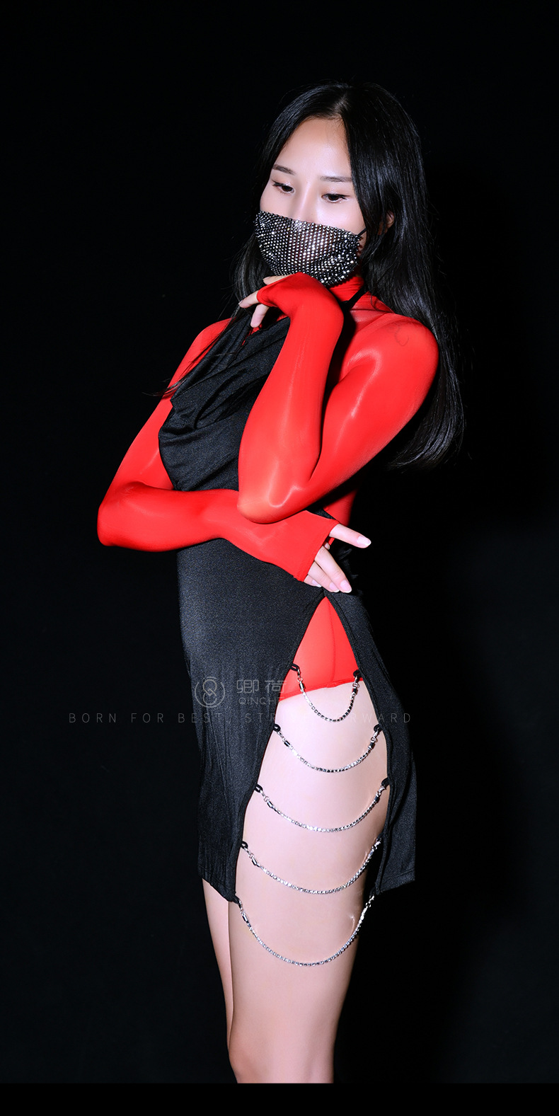 Cuello alto manga de cinco dedos [traje de baño brillante]