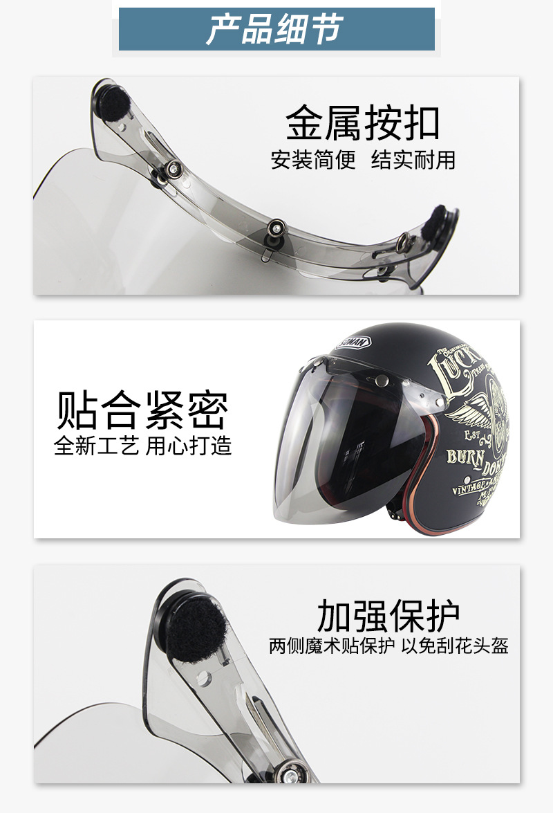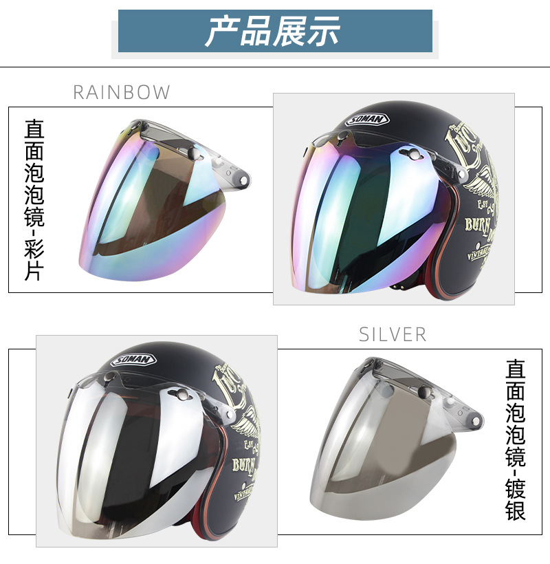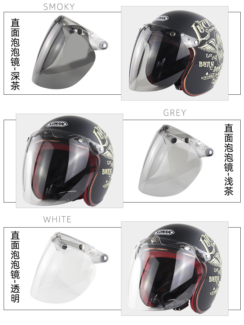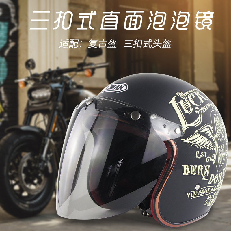 Casco de la motocicleta del coche eléctrico medio casco de tres botones lente a prueba de viento Harley casco retro cara burbuja lente