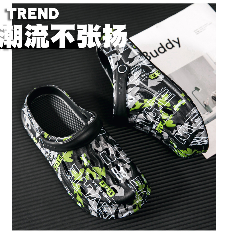 Zapatos Croc para hombre, novedad de verano, ropa exterior de moda, zapatillas Baotou, zapatos de playa antideslizantes de suela gruesa, sandalias y zapatillas informales para exteriores