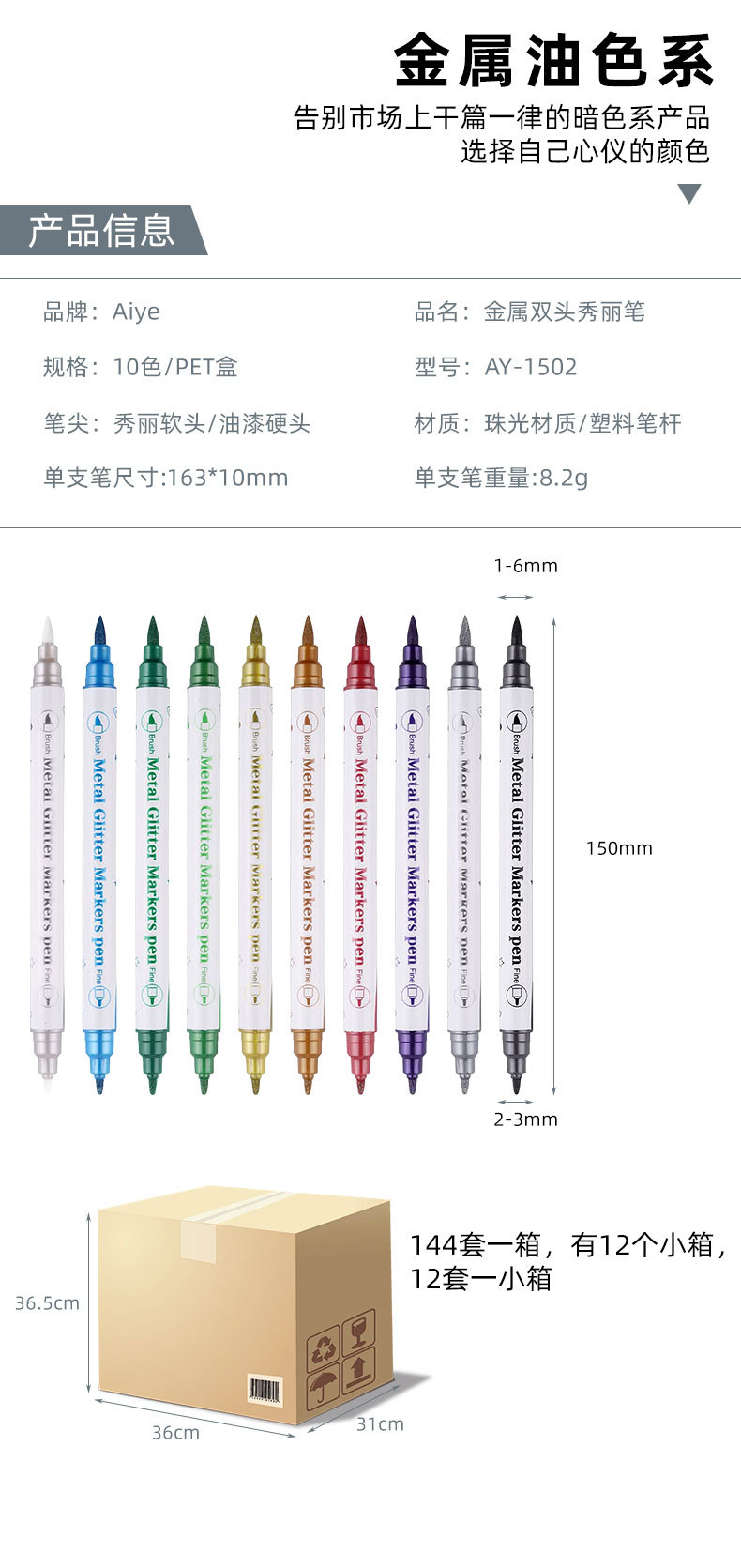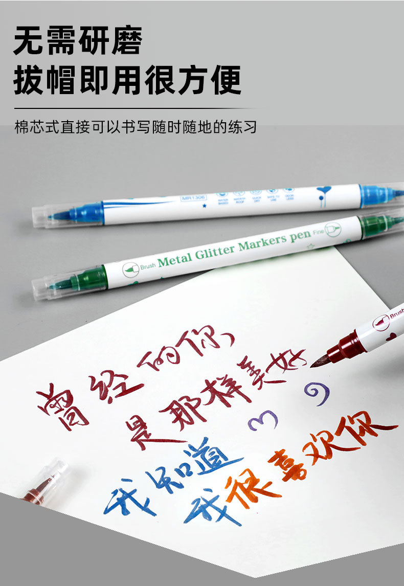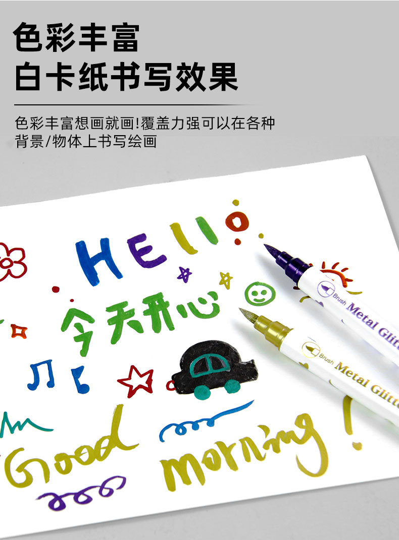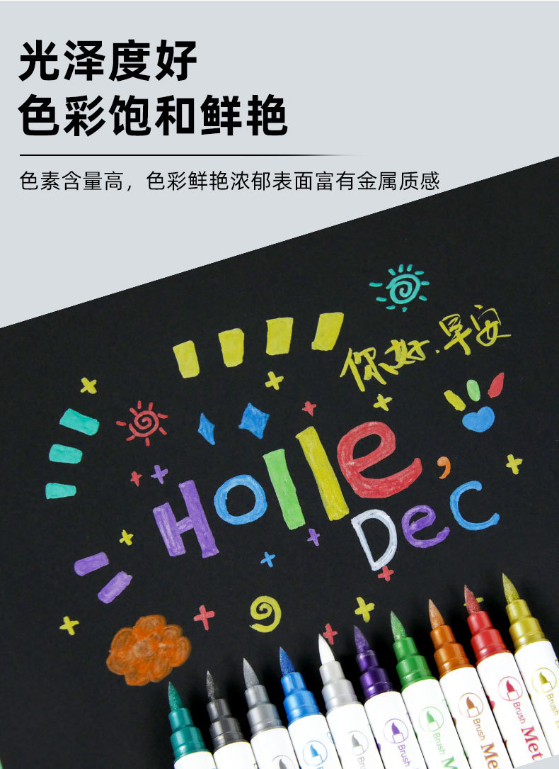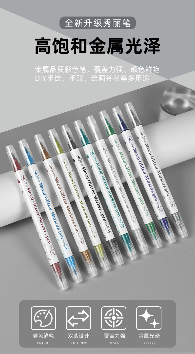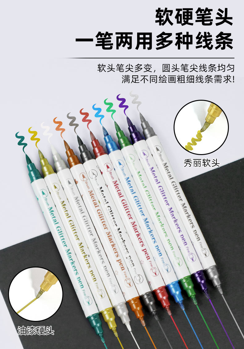 Aiye Beauty Pen-Juego de 10 colores, bolígrafo con gancho colorido, tarjeta de felicitación nacarada, manual de pintura, rotulador de cabeza blanda de doble cabeza