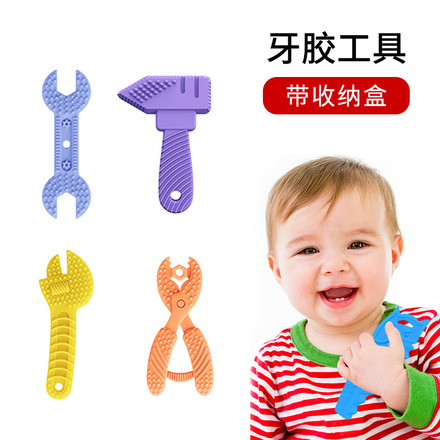 Amazon mancuerna bebé mordedor silicona teether palo bebé calmante sonajero juguete mordedura de dentición de los niños