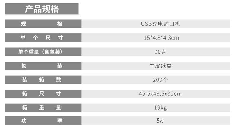 Pequeño USB recargable mini máquina de sellado Kaifeng máquina de sellado de bolsas de alimentos portátil integrada sellador de aperitivos