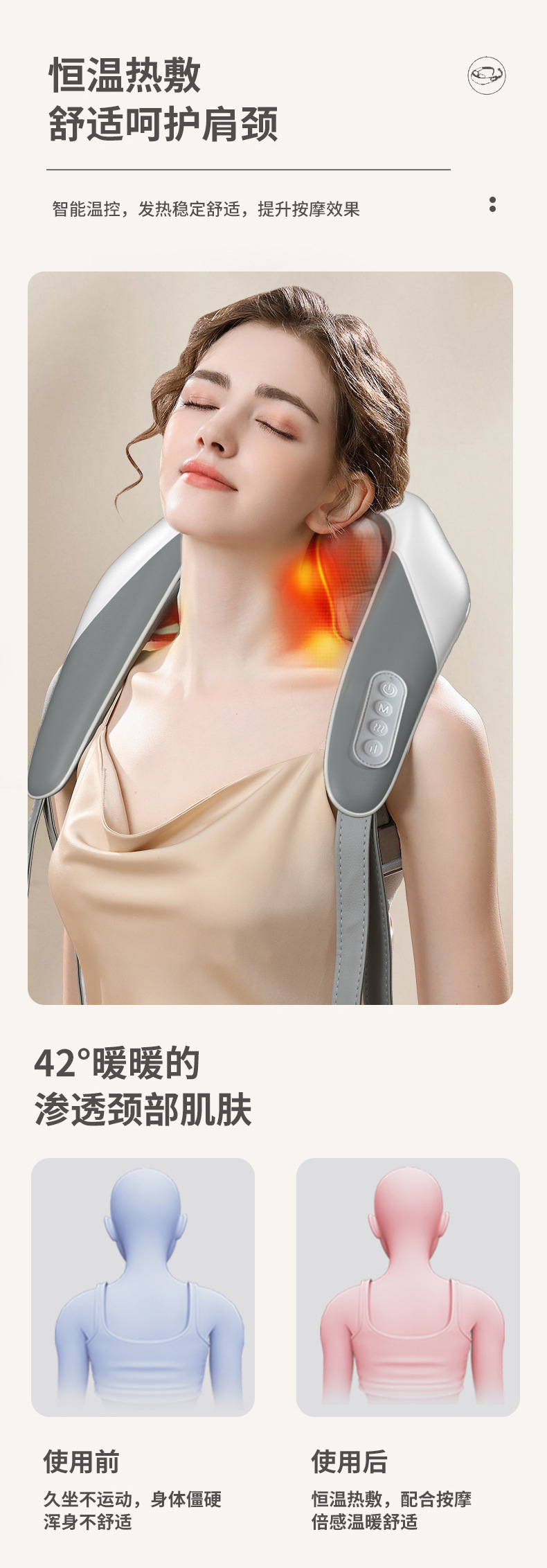 Masajeador de columna cervical inteligente de hombro y cuello, trapecio de cuello, cintura de hombro, clip de pierna, amasado, masajeador de compresa caliente, chal