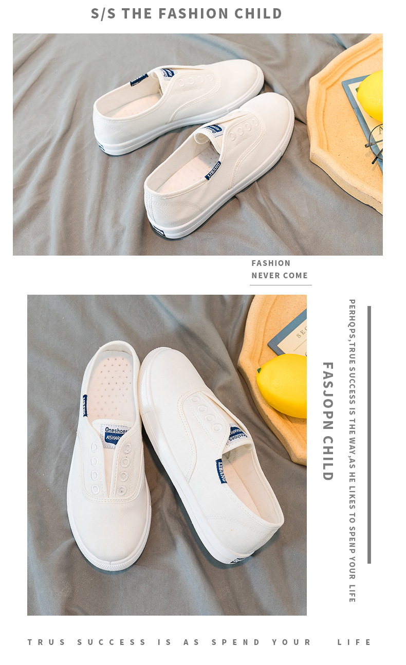 Zapatos de lona para mujer 2024 primavera nuevos zapatos blancos versátiles transpirables estilo coreano zapatos perezosos para estudiantes planos sin cordones