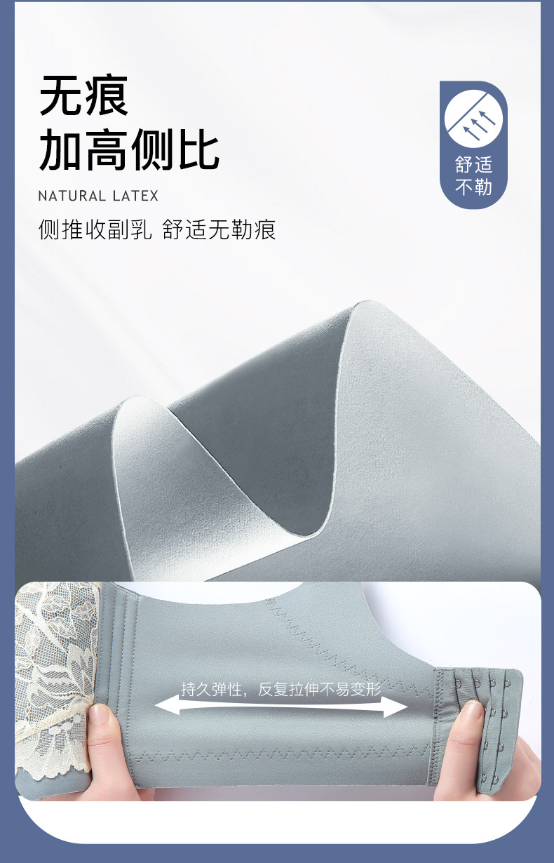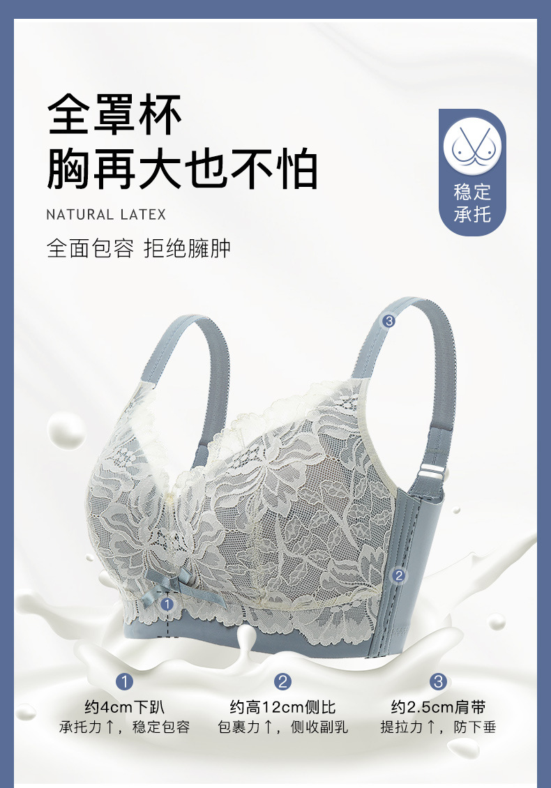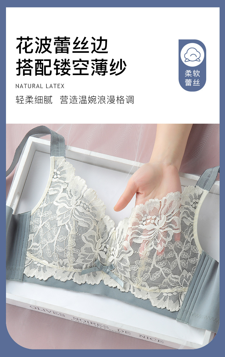 Ropa interior delgada de látex para mujer, verano cómodo sin anillo de acero, pechos grandes, sujetador de pecho pequeño, sujetador de talla grande anti-flacidez