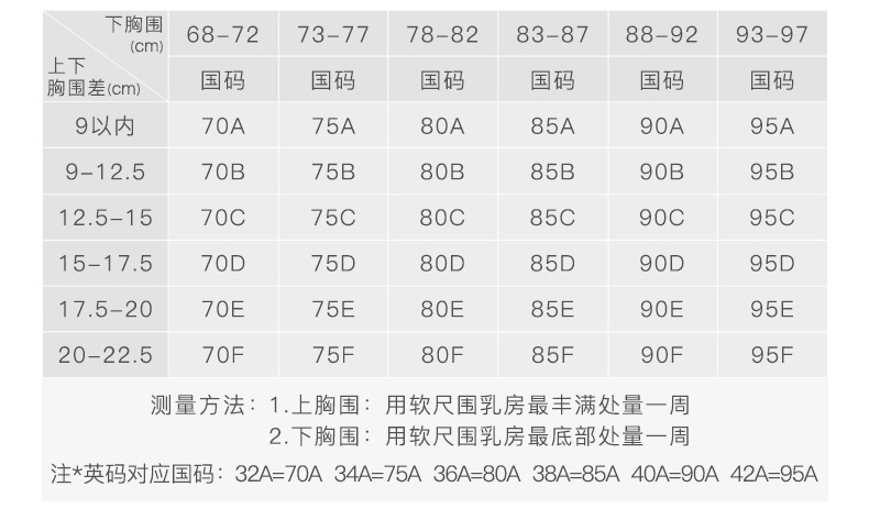 | tamaño | 40/90D,42/95B,42/95D,34/75D,40/90E |