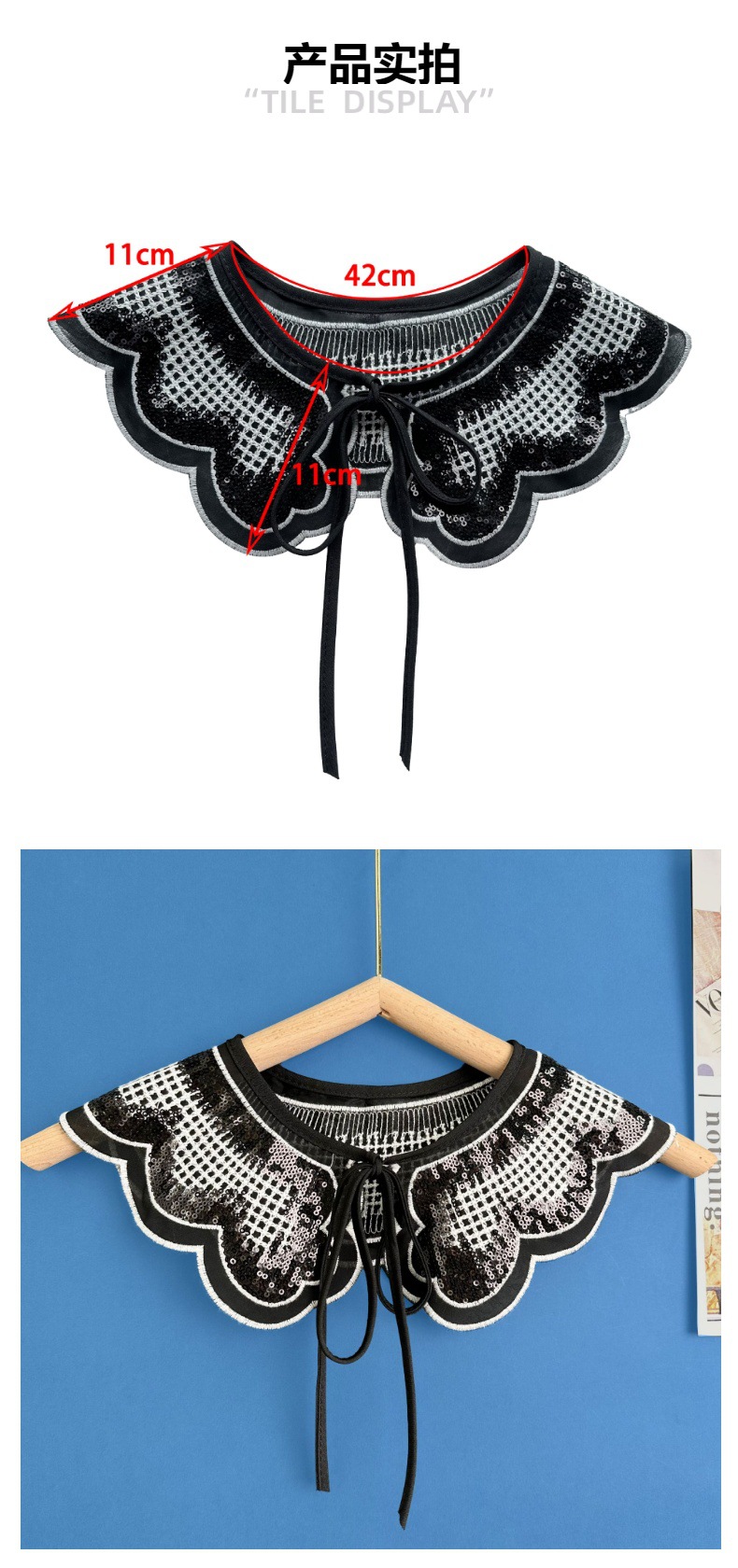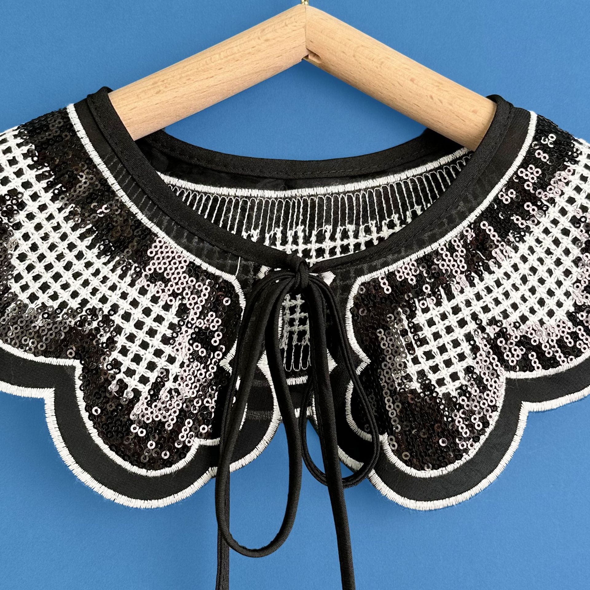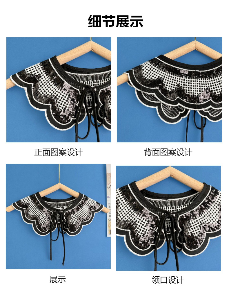 Comercio exterior gasa blanco y negro lentejuelas bordado cuello falso chal pequeño cuello versátil flor encaje de comercio electrónico transfronterizo