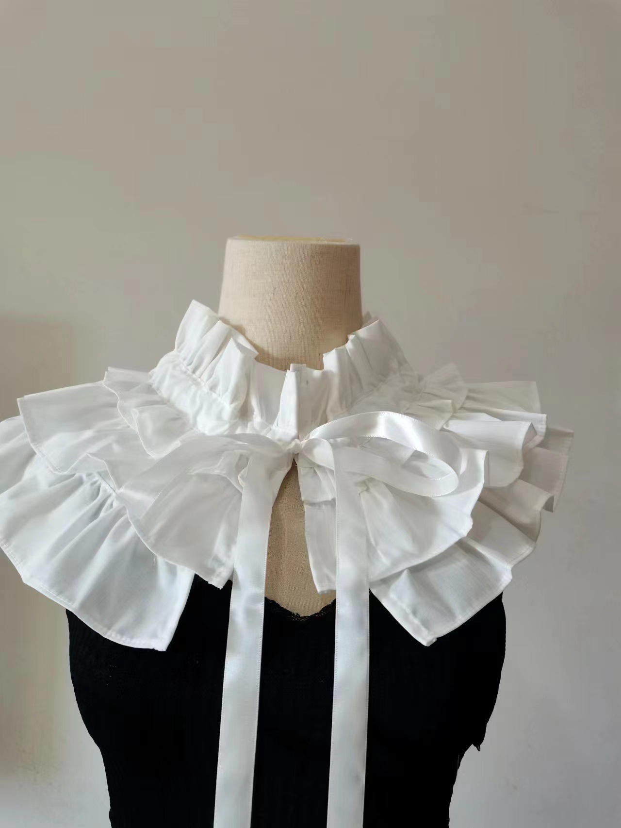 Cuello ajustable con volantes plisados de algodón puro para mujer, cuello alto francés, cuello desmontable multifuncional plisado, longitud total 75CM, cuello vuelto.