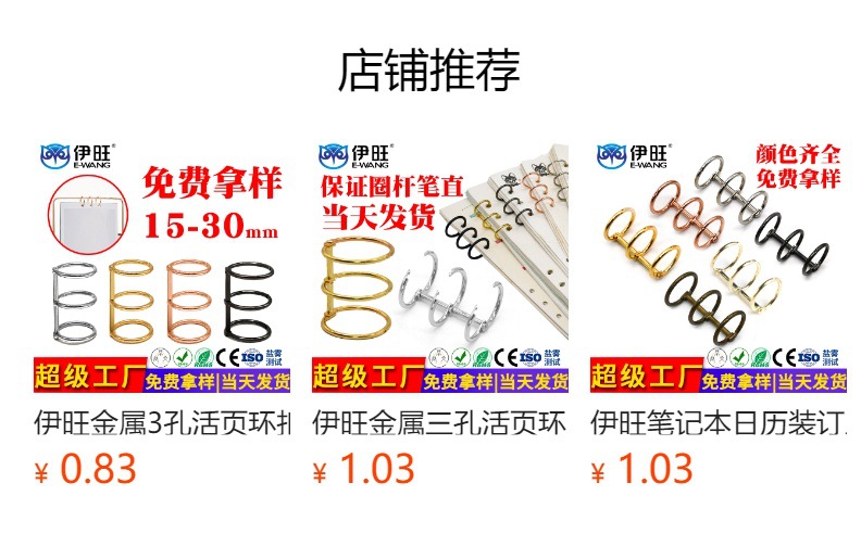 Anillos de encuadernación para cuadernos, accesorios de papelería, anillos metálicos desmontables, suministro transfronterizo, anillos de encuadernación metálicos de varios tamaños